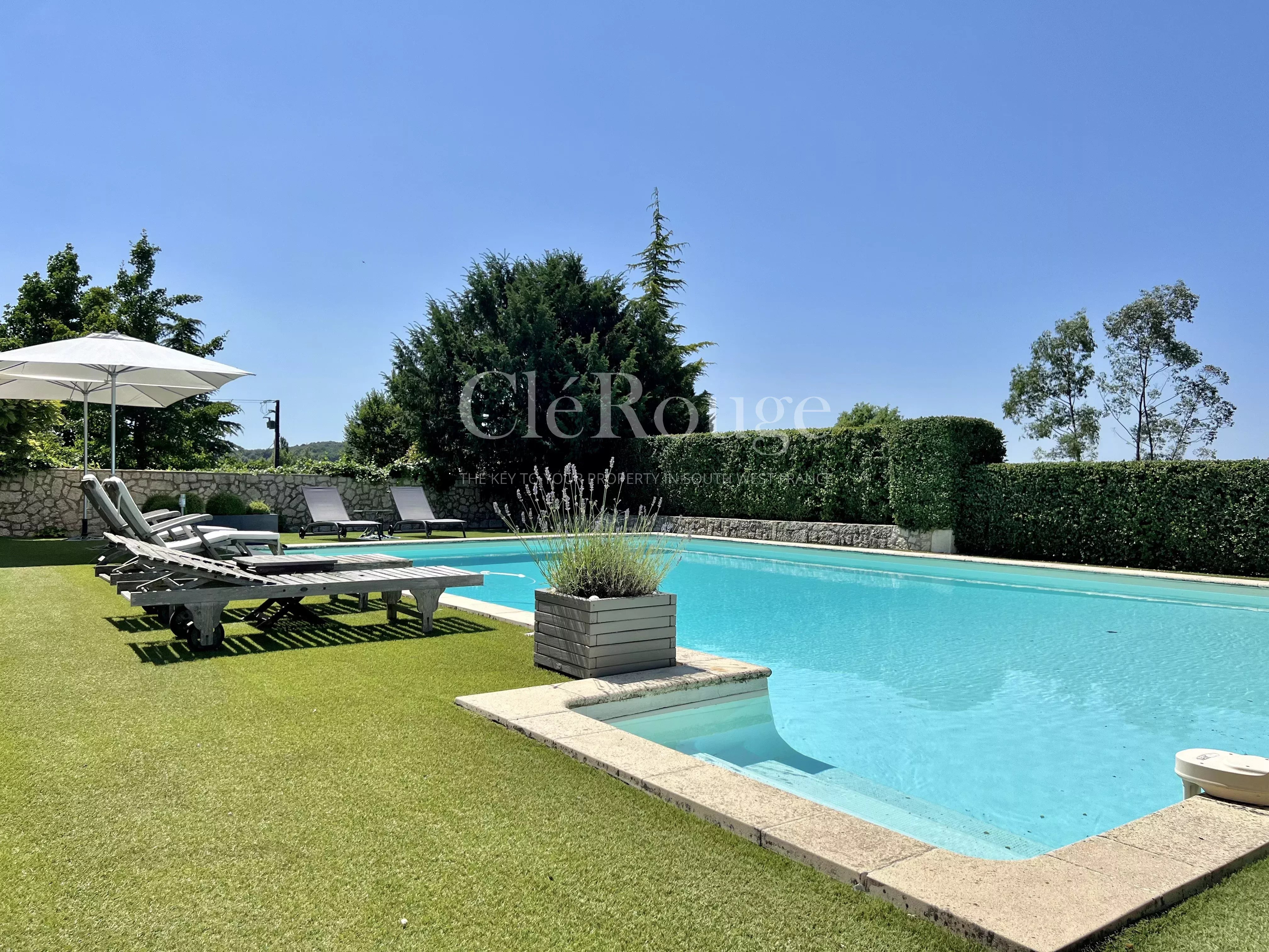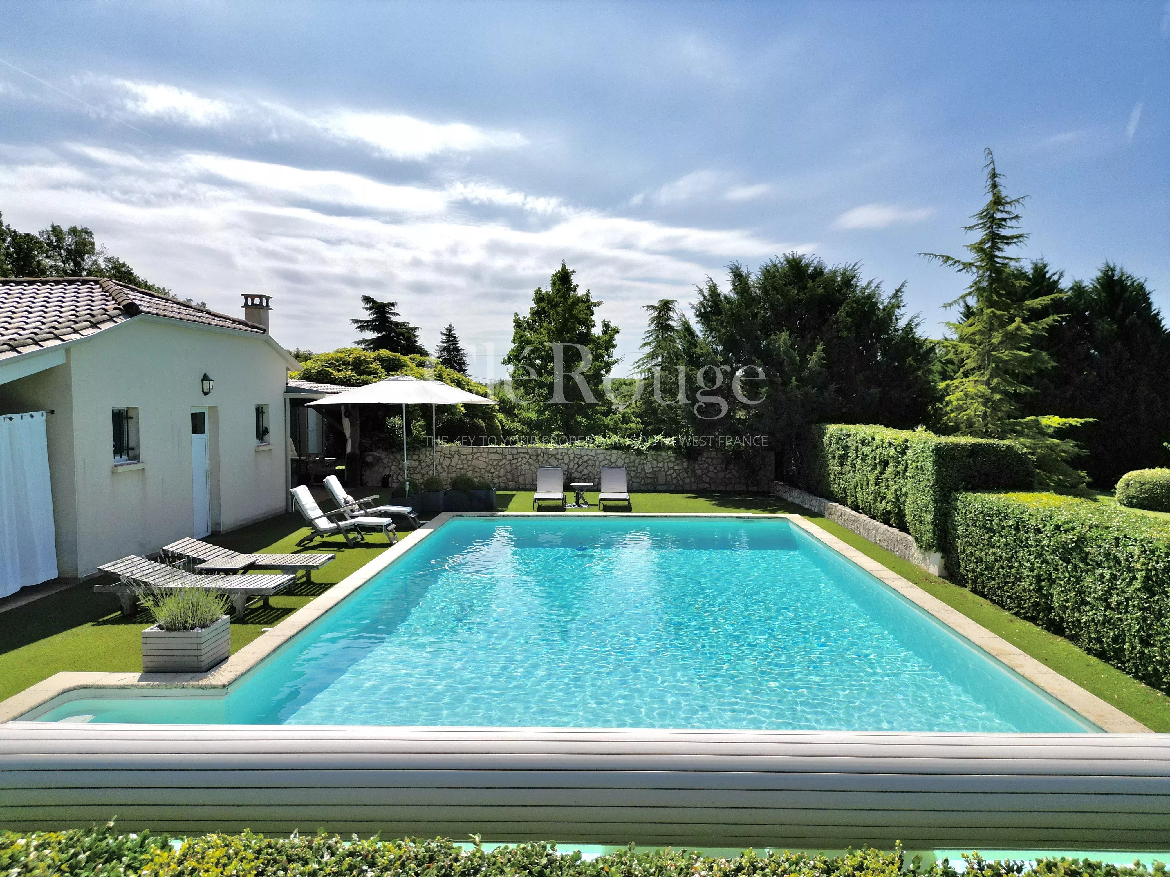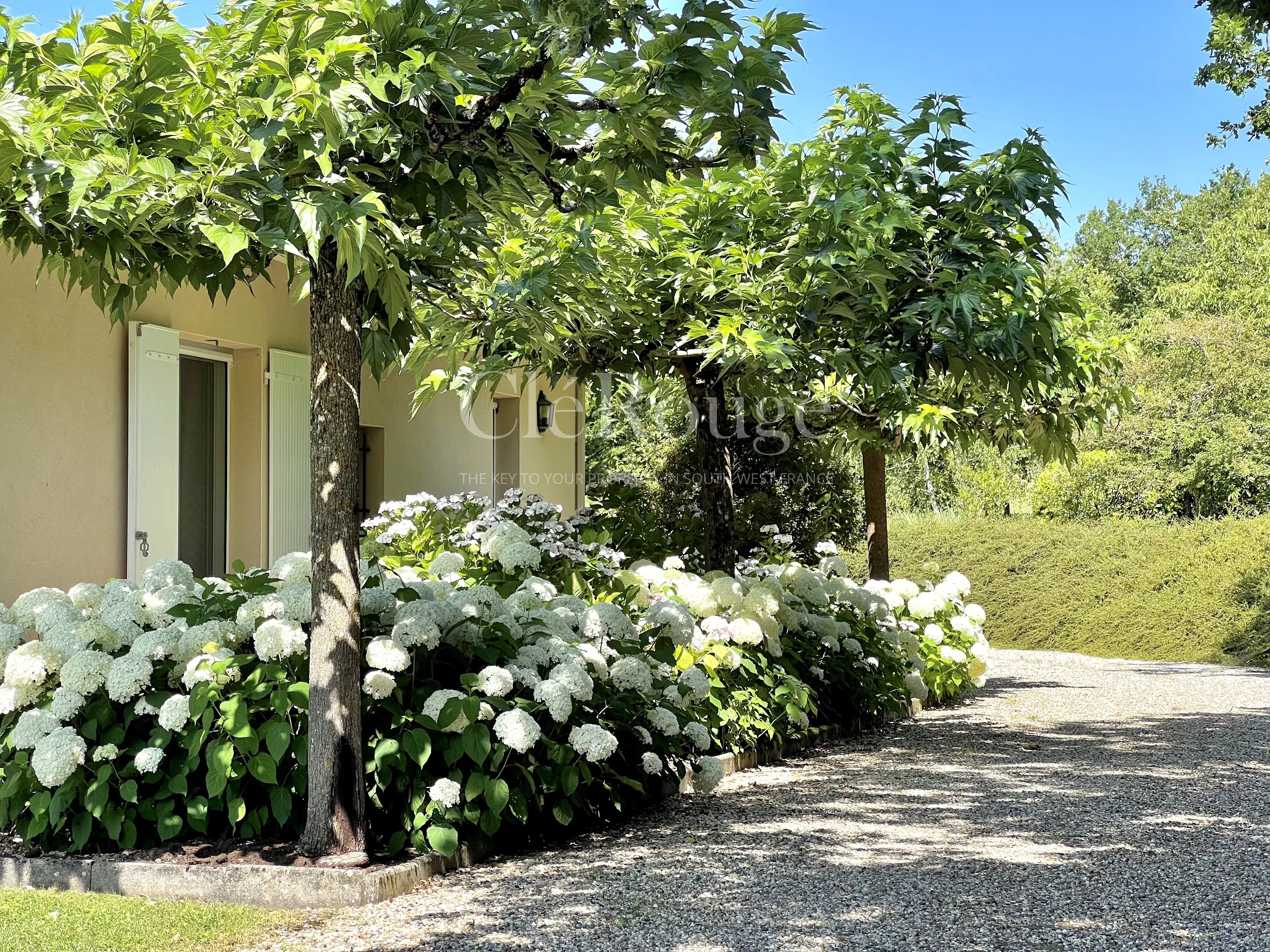 Découvrez cette magnifique propriété idéalement située dans un cadre verdoyant et privé, à seulement 20 minutes de Bergerac et de son aéroport international, et à moins de 10 minutes du prestigieux Golf des Vigiers. Cette demeure unique est un véritable havre de paix offrant des prestations de grande qualité.