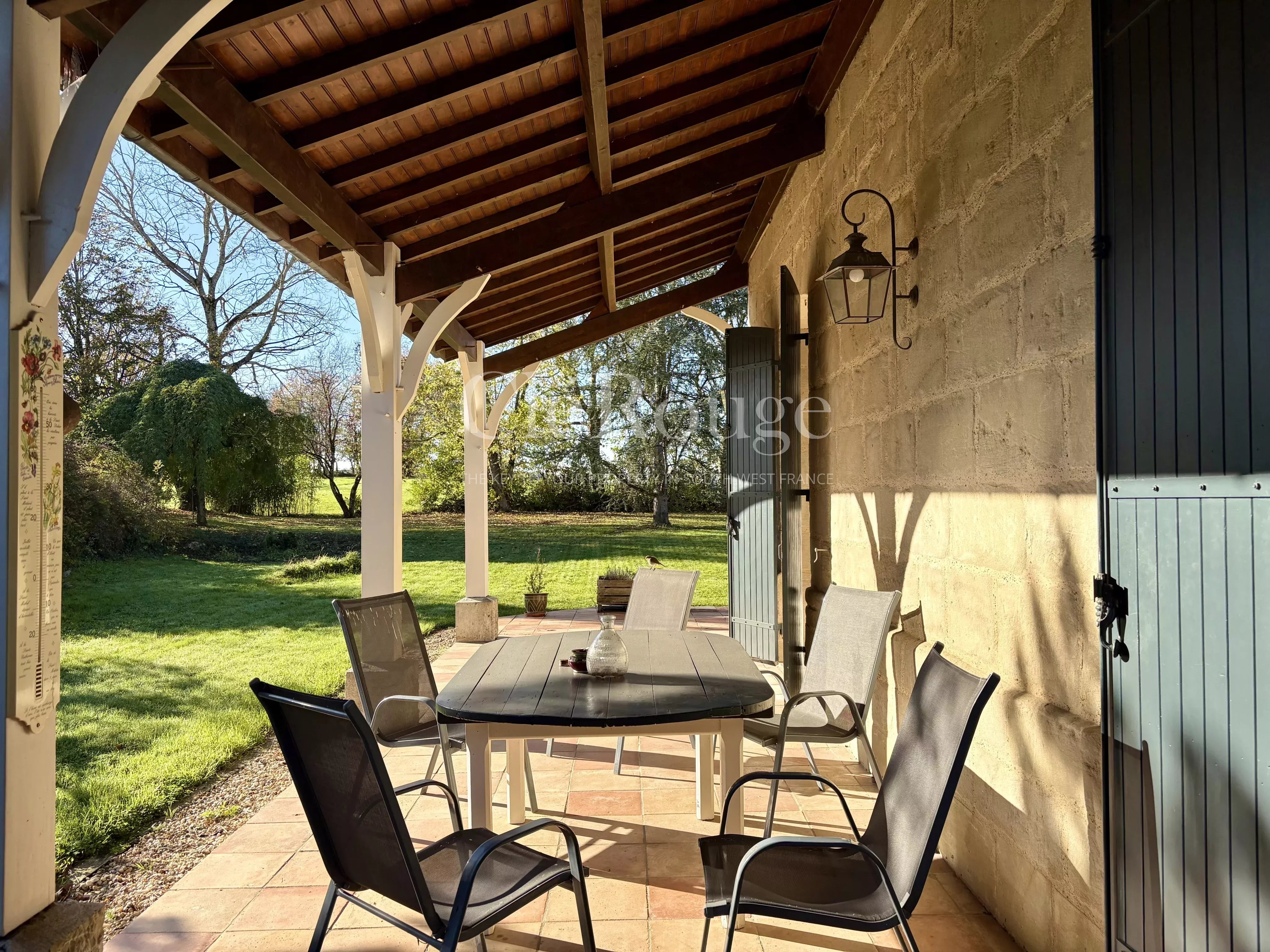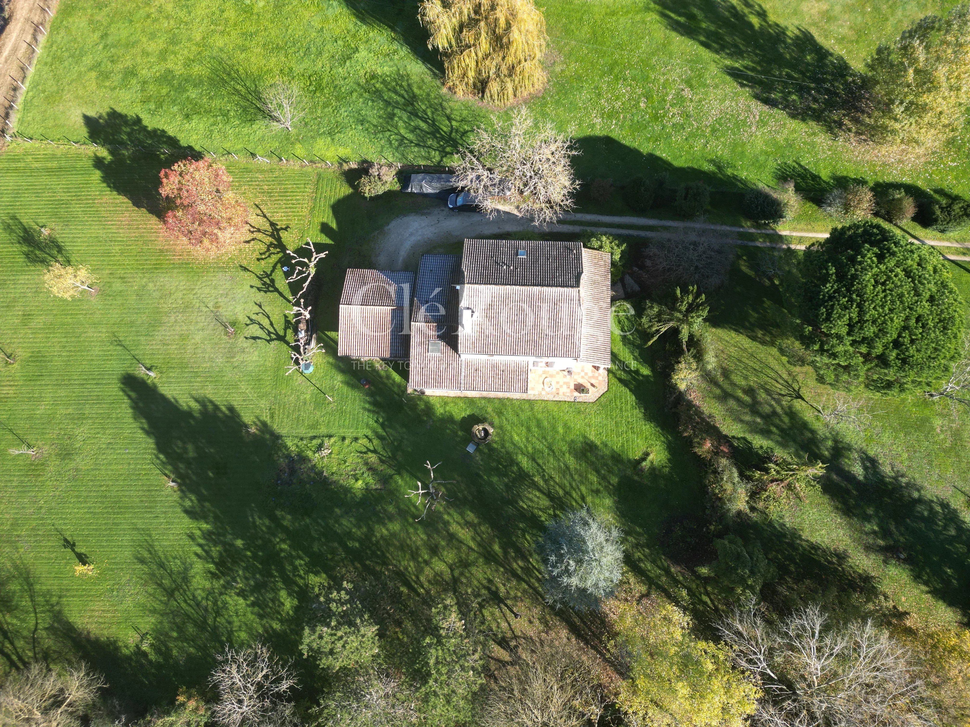 L'environnement est paisible et préservé, avec quelques maisons discrètement disséminées dans le paysage et aucun vis-à-vis, offrant une sensation d'espace et de tranquillité. La propriété bénéficie également d'une localisation privilégiée : à seulement quelques minutes de Marmande, avec ses commerces, sa vie culturelle et sa gare, et proche de Tombeboeuf où l'on peut profiter du golf, des courts de tennis et de diverses activités de plein air.