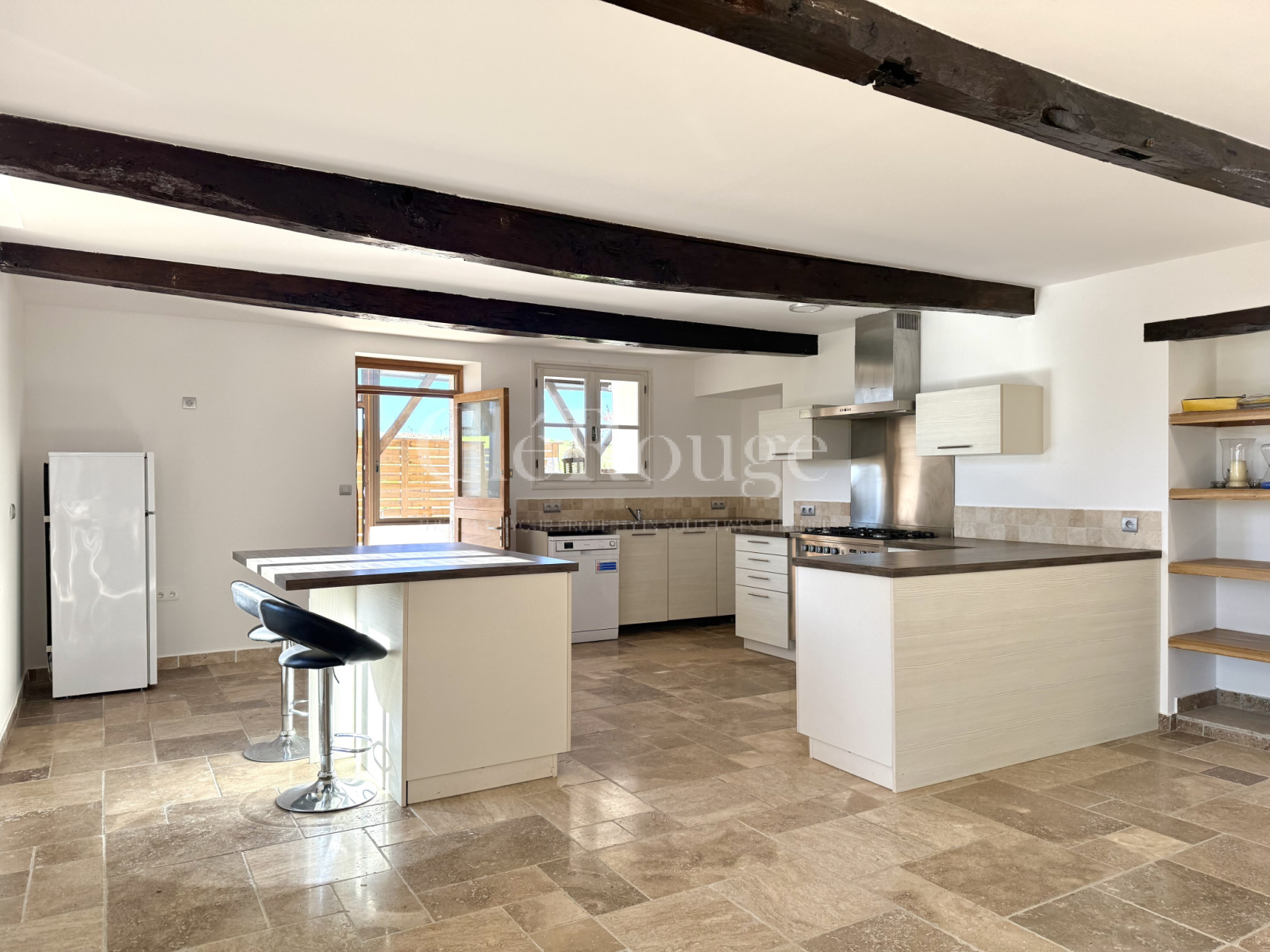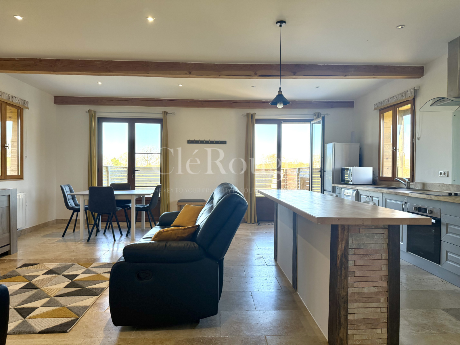 Le troisième logement se compose d’une grande pièce ouverte avec cuisine et séjour, deux chambres et une salle d’eau.