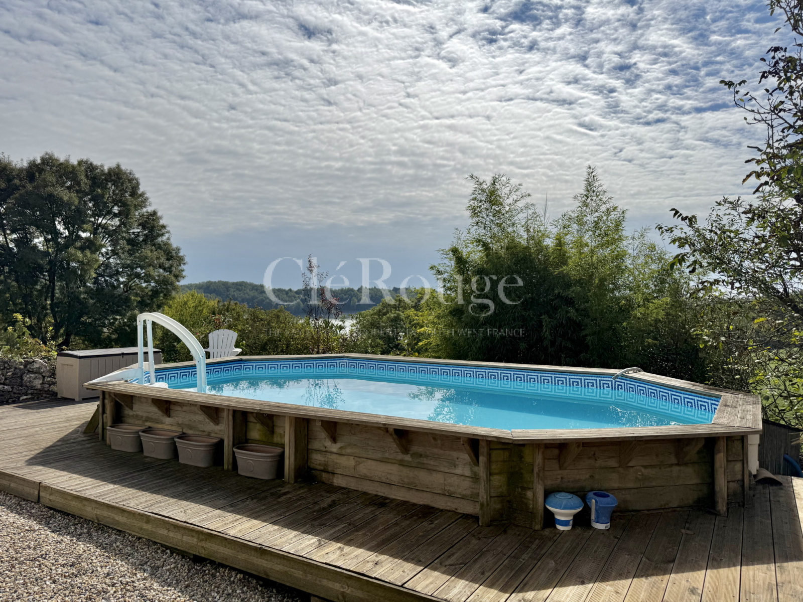 À l’extérieur, une vaste terrasse couverte offre une vue exceptionnelle sur la vallée et invite à la détente comme aux repas d’été. La piscine surélevée complète parfaitement cet espace de vie estival.
