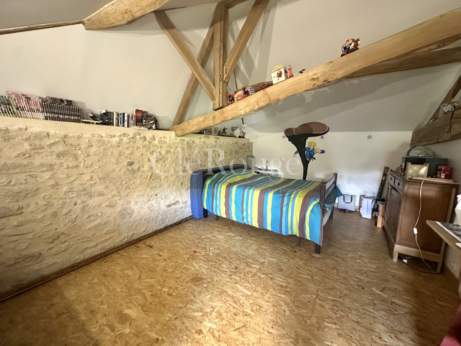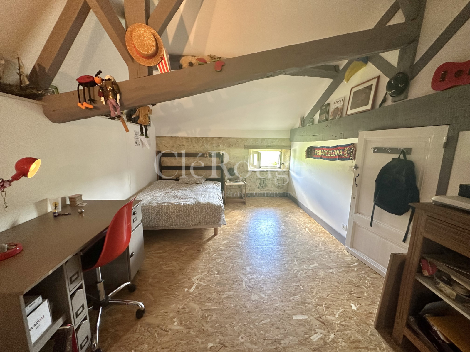 La propriété dispose d'une salle à manger spacieuse, d'une cuisine équipée, d'un salon confortable avec une cheminée en pierre, ainsi que de quatre chambres réparties sur deux étages. Deux salles de bains se trouvent également au premier étage.