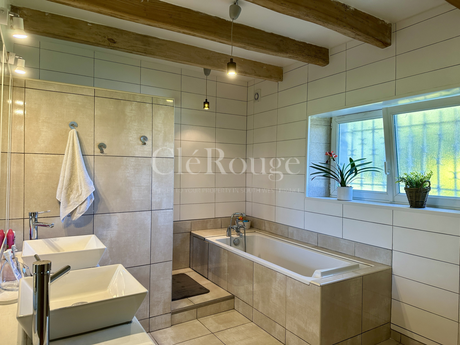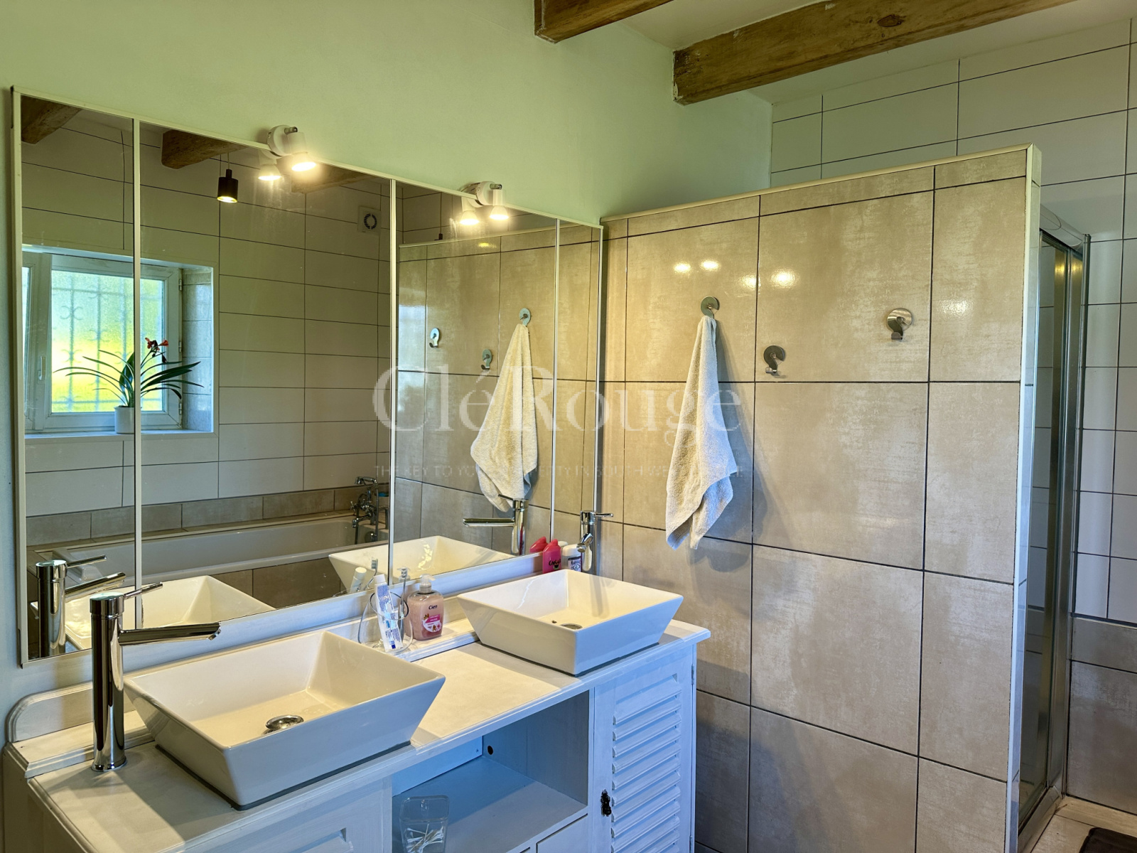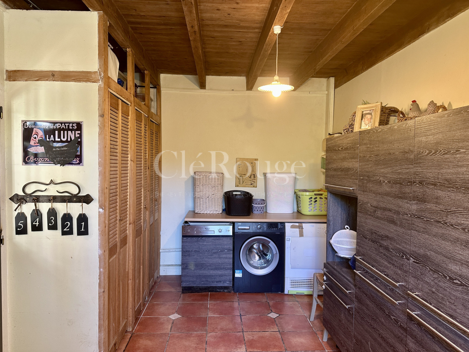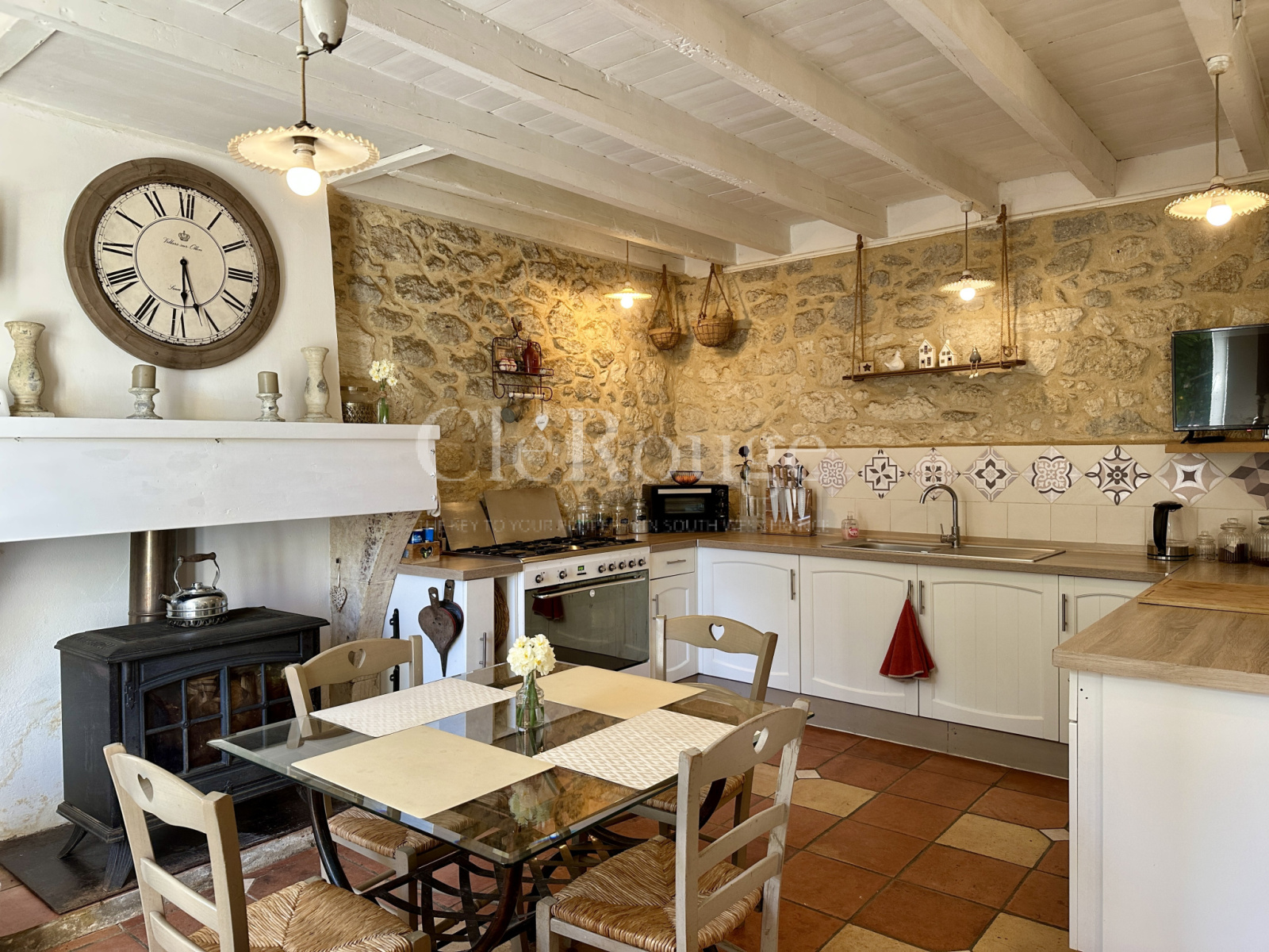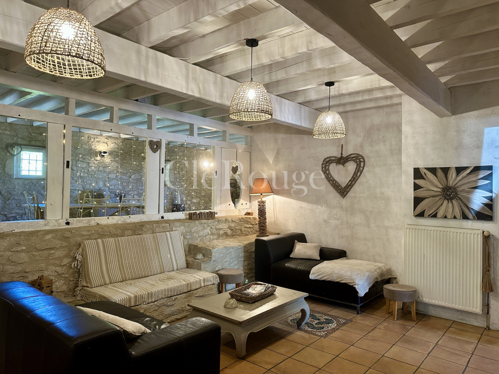 Cette propriété de caractère offre une cuisine équipée chaleureuse avec sa magnifique cheminée, un vaste salon ouvert sur la salle à manger idéale pour les repas en famille ou entre amis. Une salle d'eau complète le rez-de-chaussée.