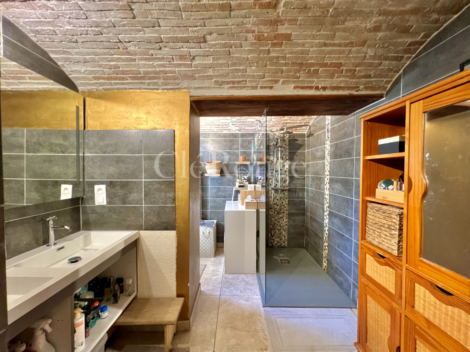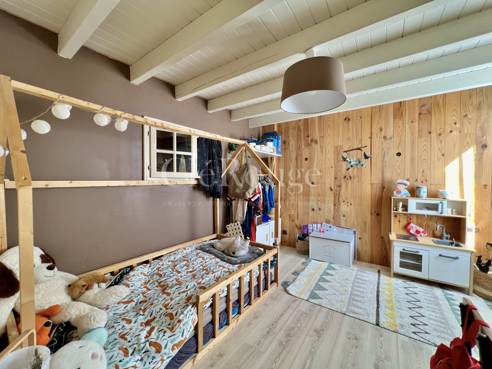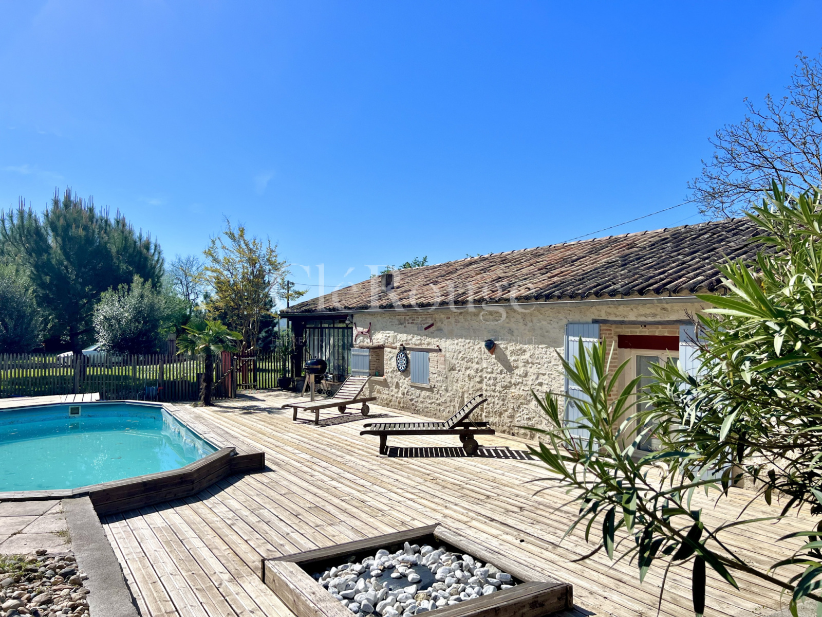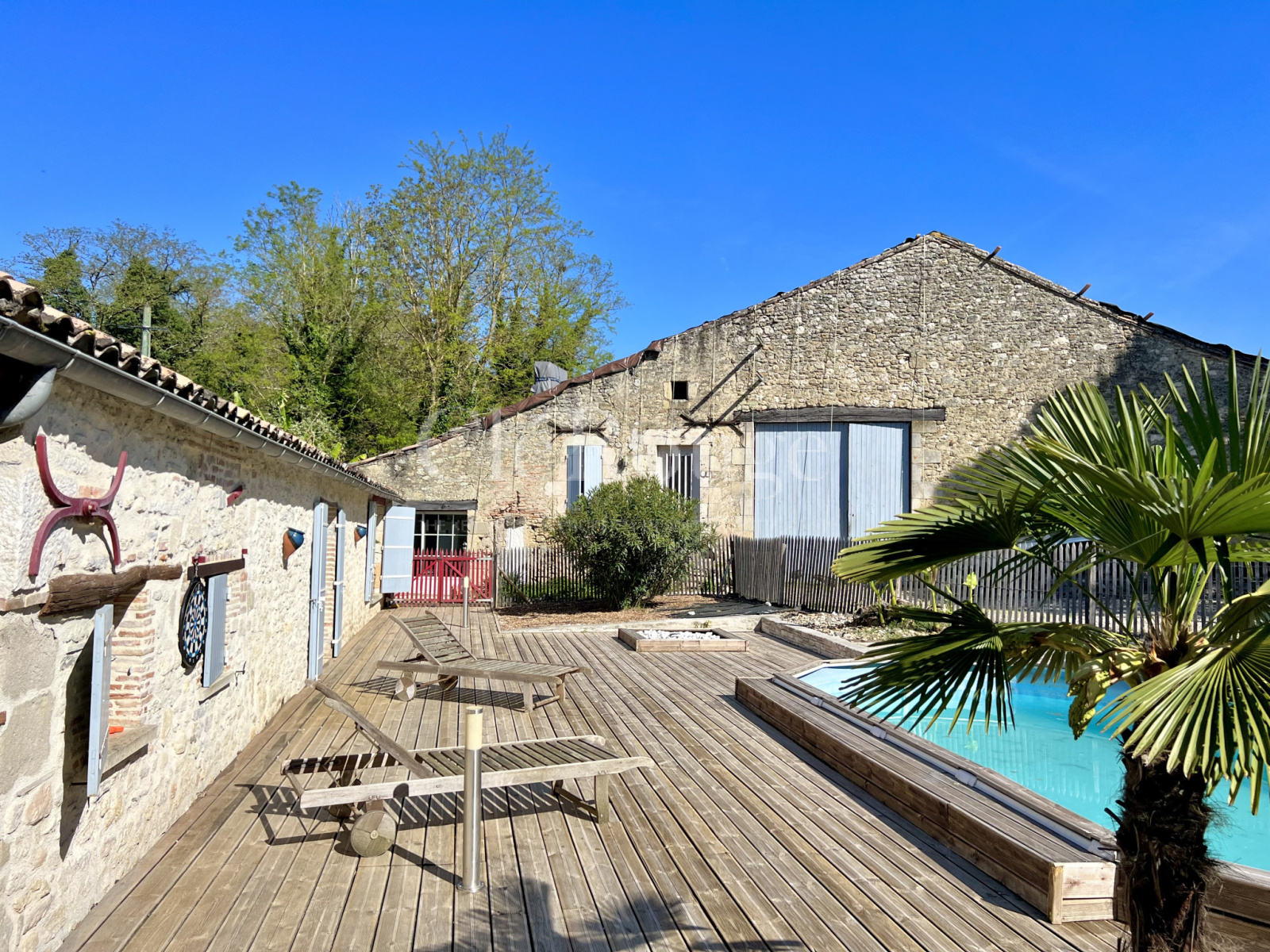 Une buanderie et une chambre avec salle d'eau complètent cette grange, le tout sur un terrain d'environ 3060 m² avec une belle terrasse en bois et une piscine.