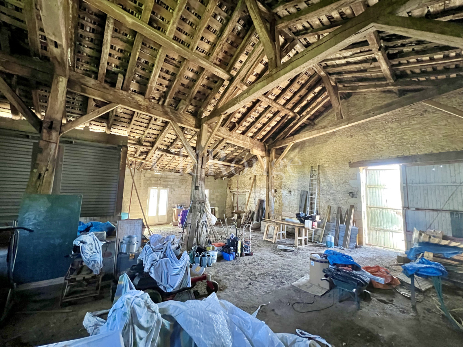 La grange, quant à elle, se compose de deux parties dont une grande pièce de plus de 178 m² et une autre d'environ 60 m² avec de nombreuses ouvertures.