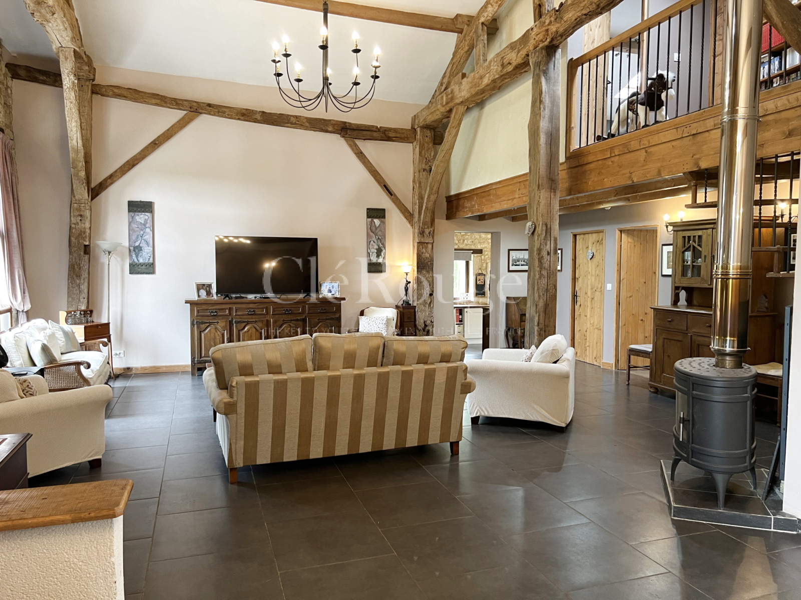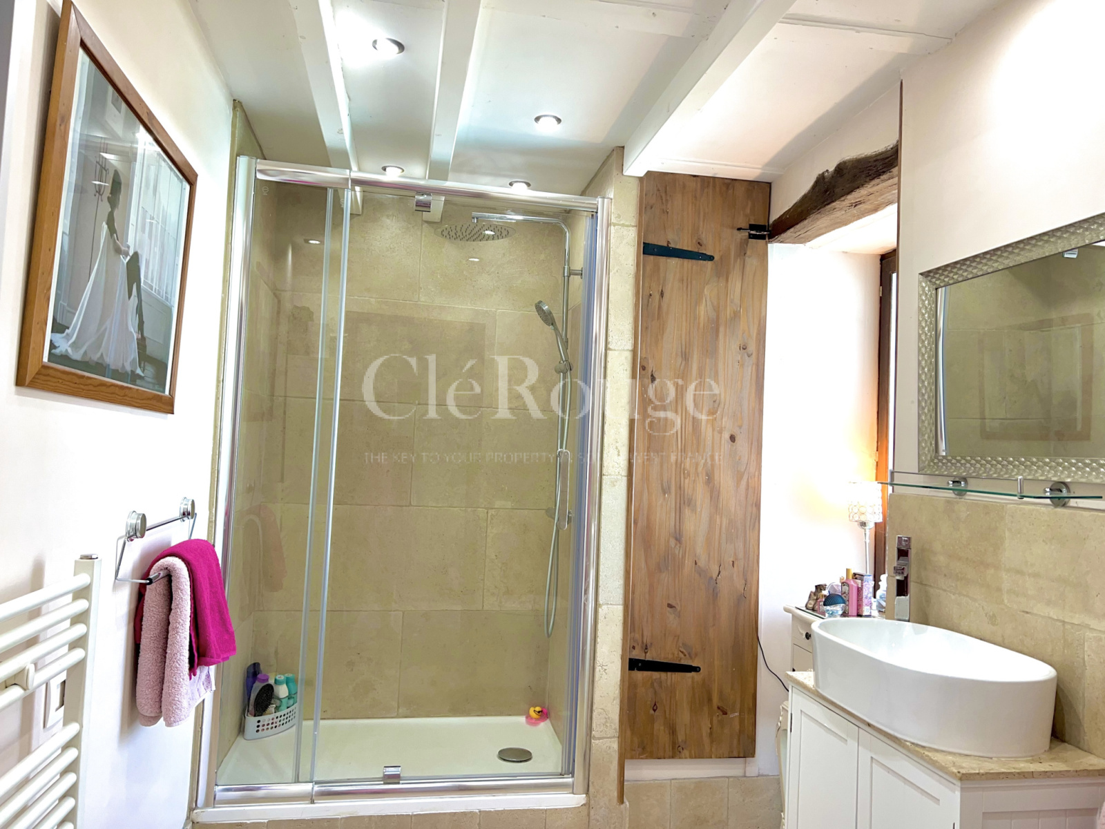 La grange convertie de 205 m² est une propriété spacieuse et aérée avec un salon/salle à manger, une cuisine et une buanderie. Elle comprend trois chambres au rez-de-chaussée, chacune avec sa propre salle de bains, et deux chambres supplémentaires au premier étage avec des portes attenantes menant à une salle d'eau commune.