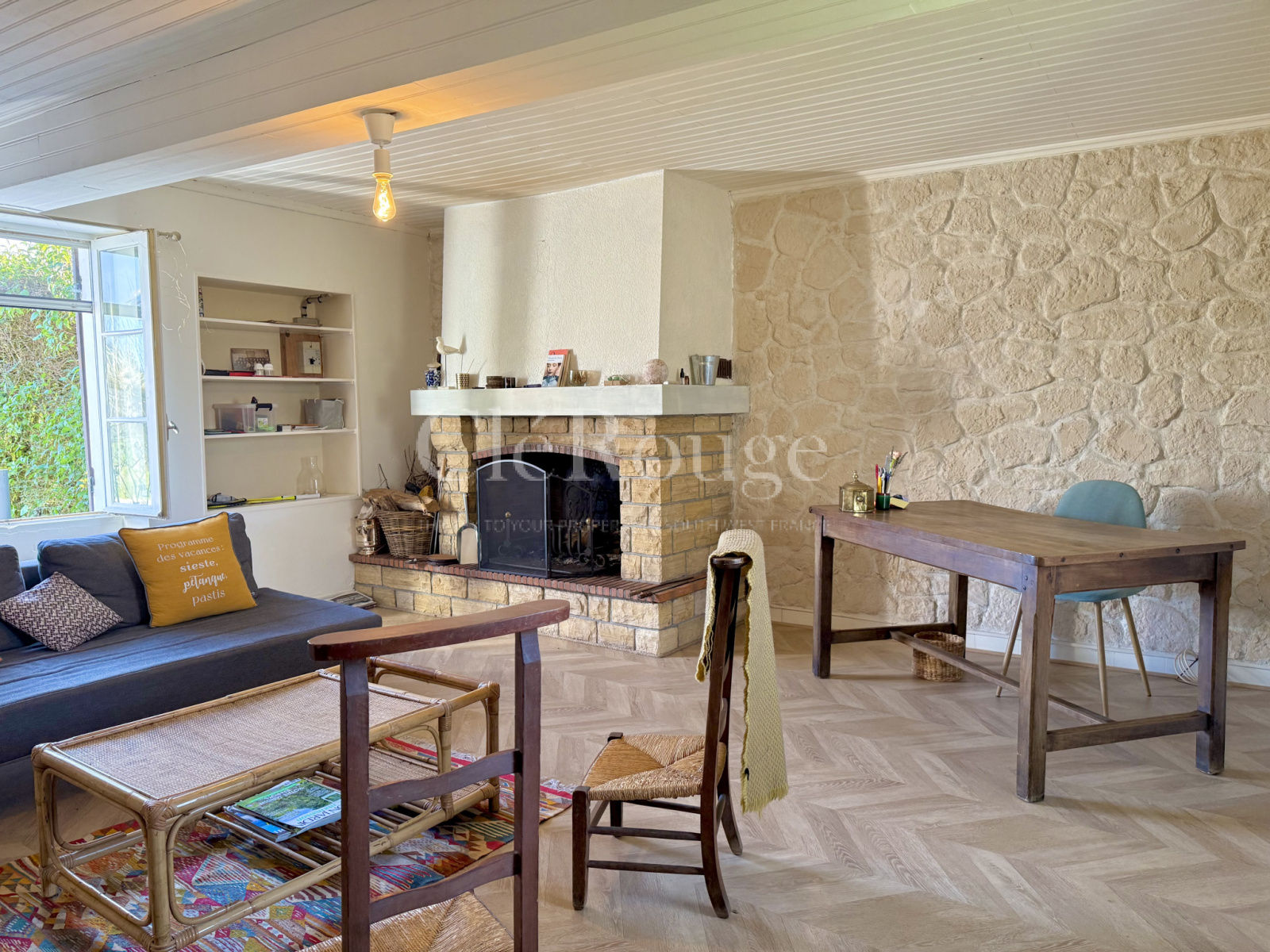 Nichée au cœur de la magnifique campagne, entourée de vignes, cette charmante maison en pierre de 3 chambres, mitoyenne, offre un parfait mélange de charme rustique et de confort moderne.