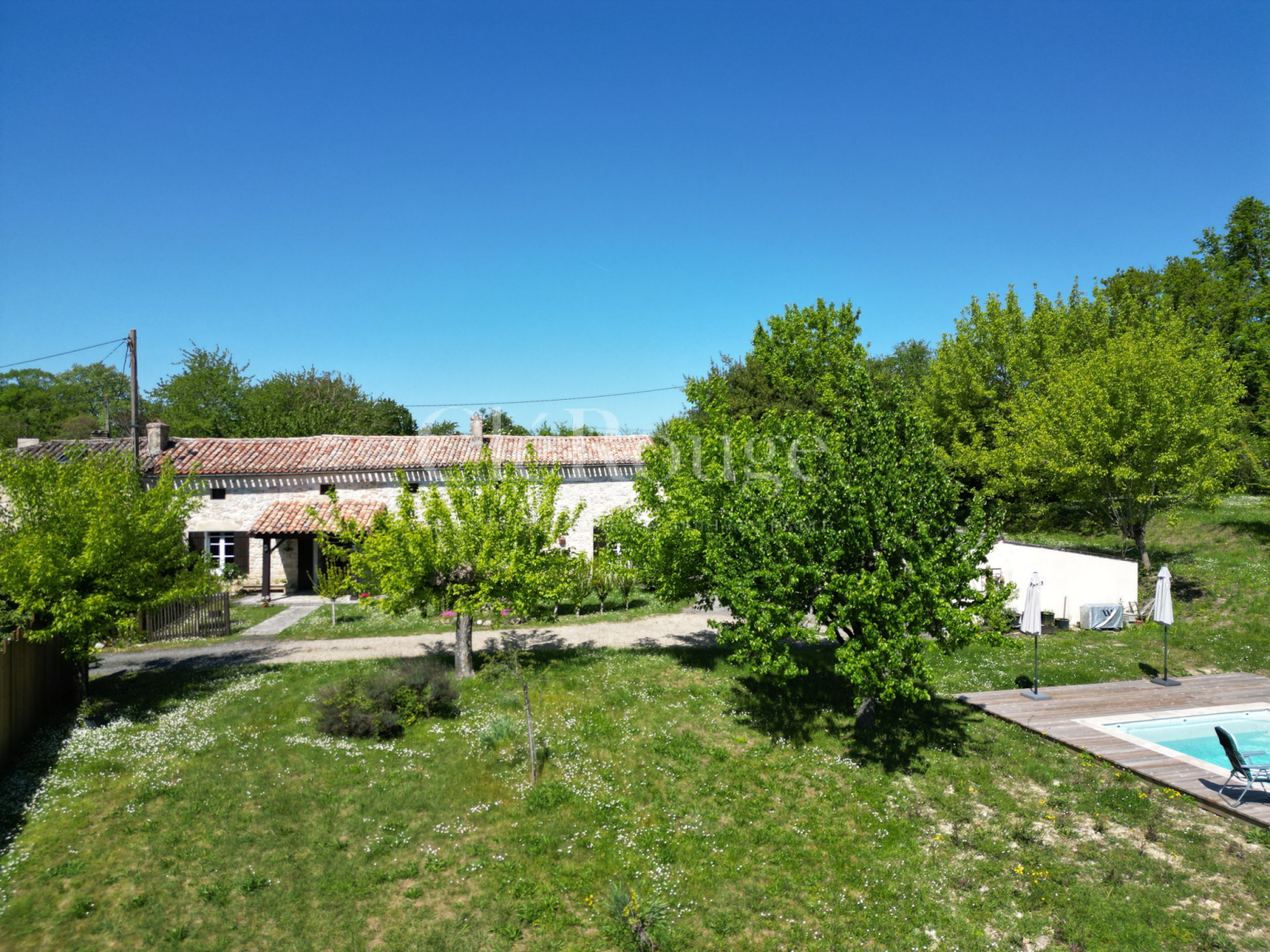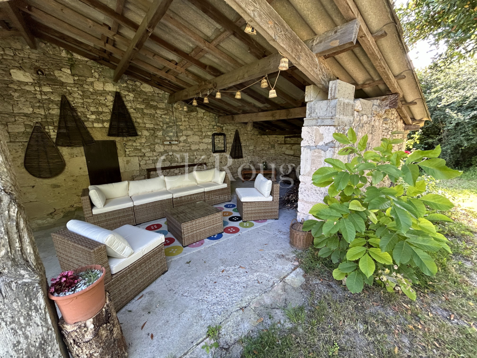Établie sur un terrain de 3 400 m², la propriété propose une variété d’espaces extérieurs couverts et non couverts, parfaits pour profiter pleinement du cadre champêtre tout au long de l’année.