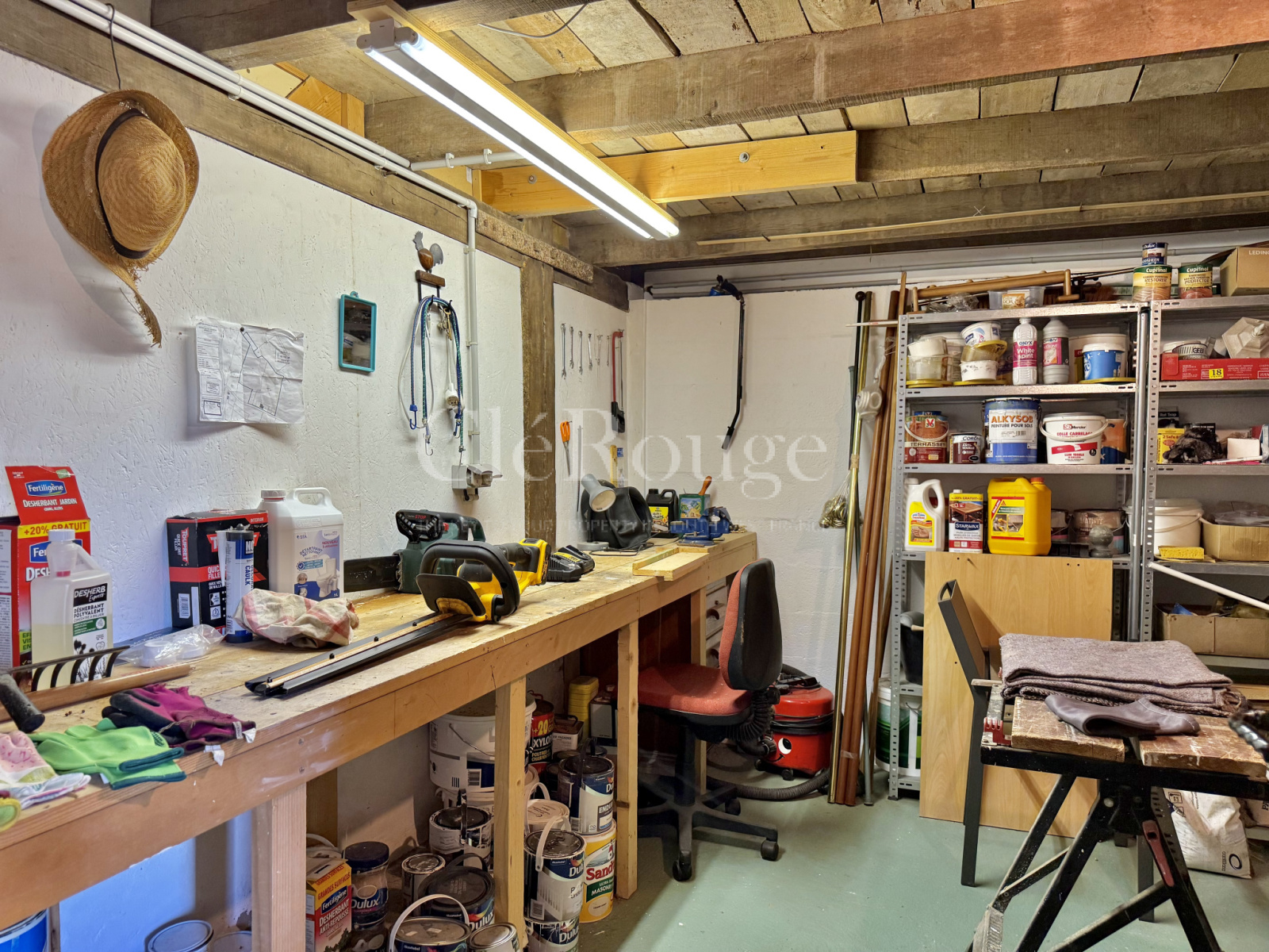 Un escalier mène à un rez-de-jardin comprenant une buanderie, un cellier, un atelier, et une salle d'eau. Cet espace pourrait être aménagé en espace supplémentaire indépendant, tel qu'un studio (sous réserve des autorisations nécessaires).