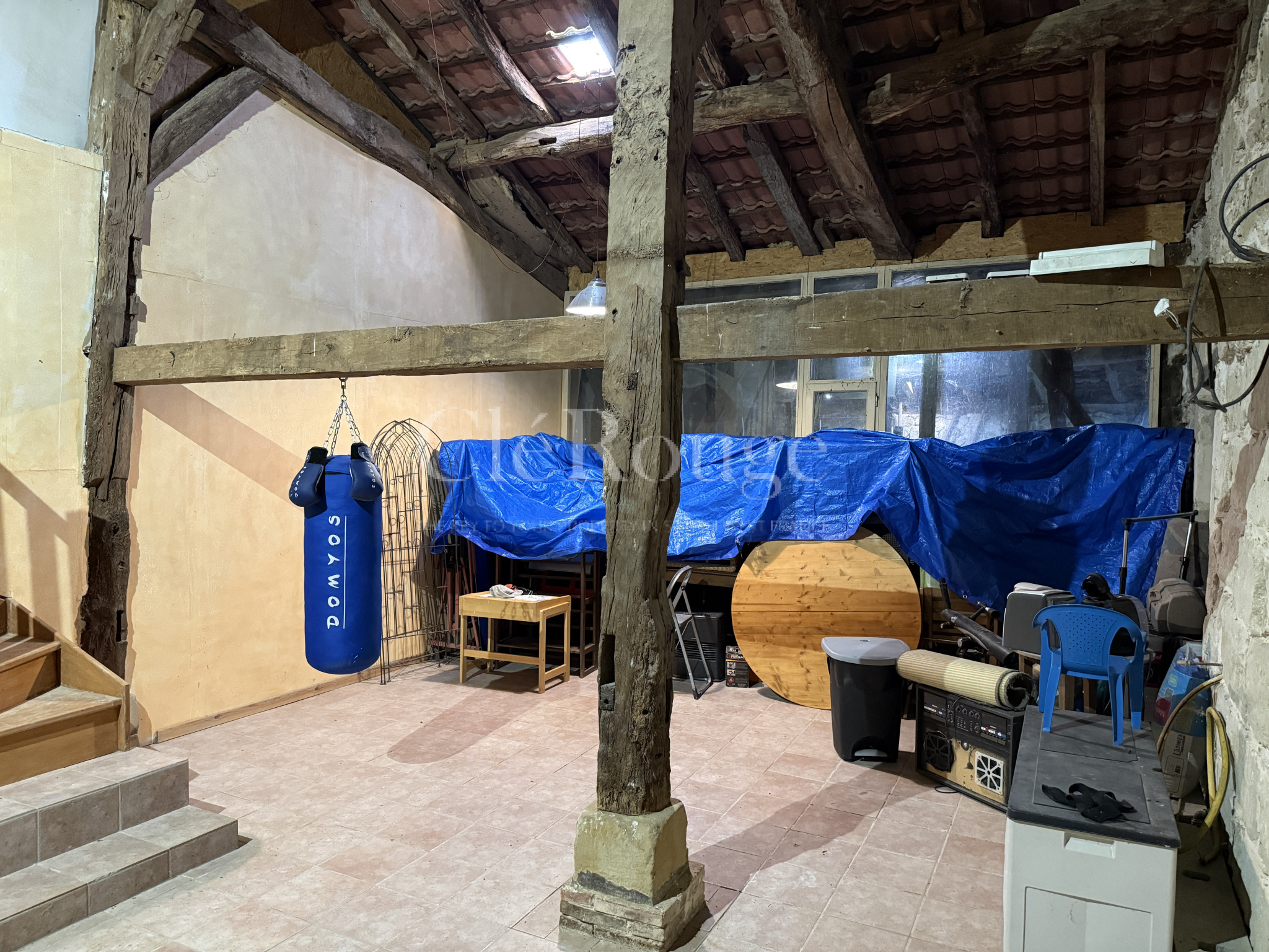 À l’étage, une partie à rénover composée de trois pièces laisse entrevoir un potentiel considérable pour créer de nouvelles chambres, un dressing, une salle d’eau ou un espace professionnel. Deux grandes granges attenantes, toujours sous le même toit, complètent l’ensemble et conviendront parfaitement pour du stockage, un atelier ou toute activité manuelle. Enfin, à l’extérieur, la piscine apporte une touche de détente et de confort appréciable dès les beaux jours.