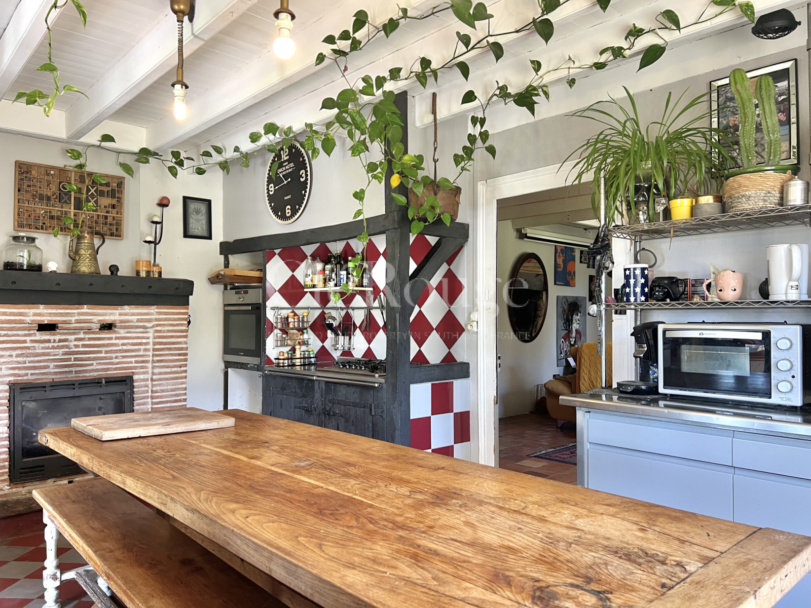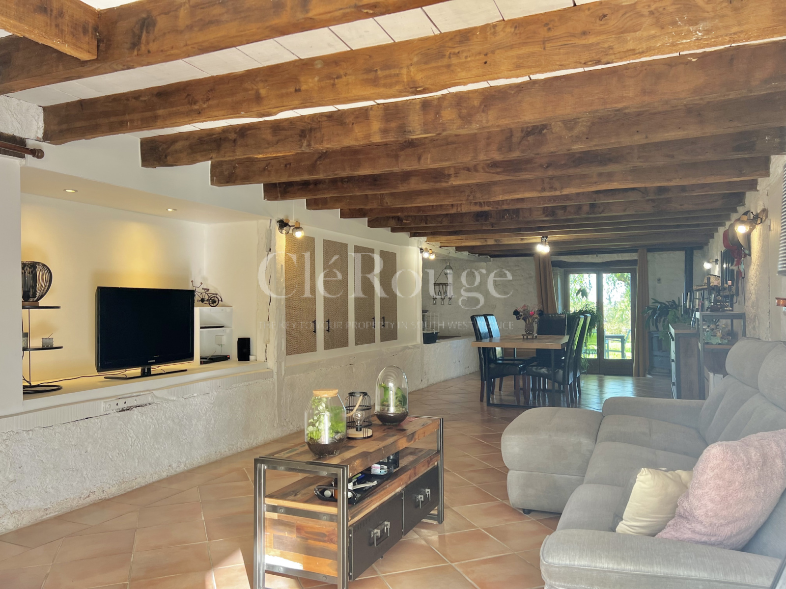 La maison principale se compose d'un salon/salle à manger, d'une cuisine avec un accès direct à une magnifique terrasse couverte et une piscine, trois chambres, dont l’une avec un point d’eau. Une salle d’eau séparée complète la partie nuit.