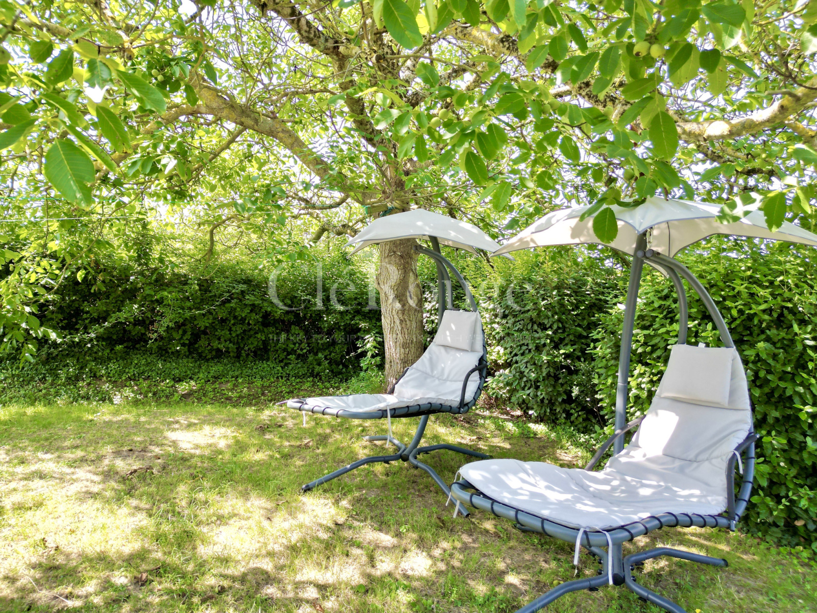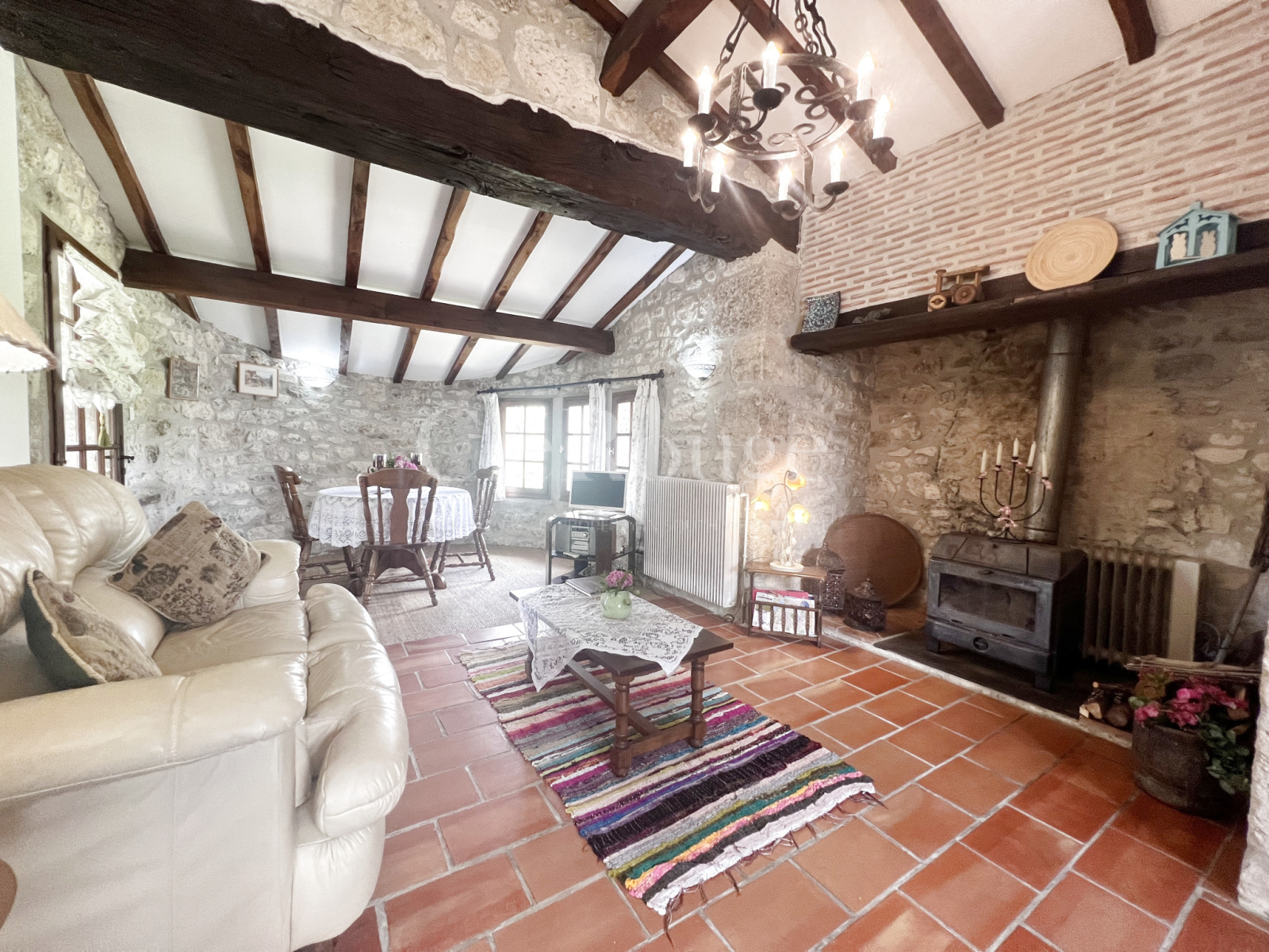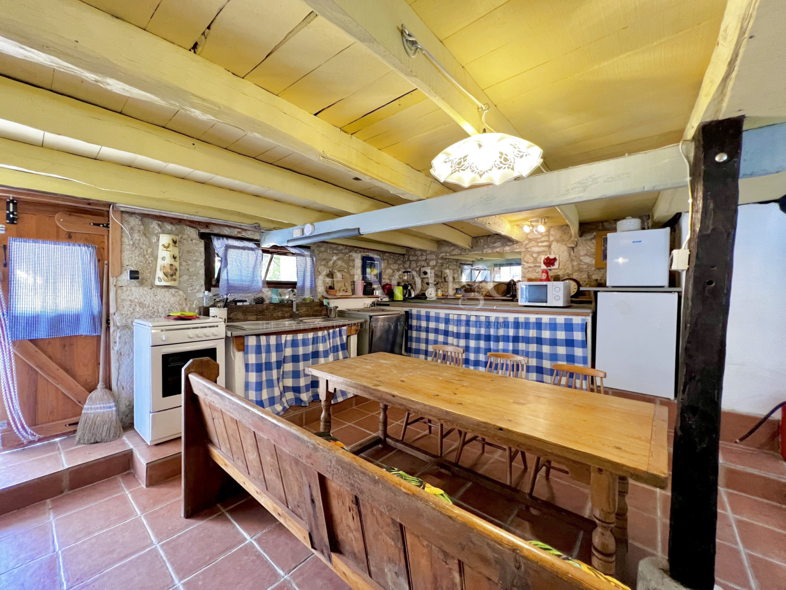 Le gîte 2 dispose d'une cuisine qui s'ouvre sur une terrasse idéale pour les repas en plein air. À l'intérieur, le salon ajoute du caractère et du charme à l'espace. Le gîte comprend également une chambre spacieuse au rez-de-chaussée avec une salle d'eau attenante. En outre, au niveau de la mezzanine, vous trouverez une autre grande chambre avec sa propre salle d'eau. Une porte relie le gîte à la maison principale, ce qui permet d'intégrer les deux espaces si on le souhaite.
