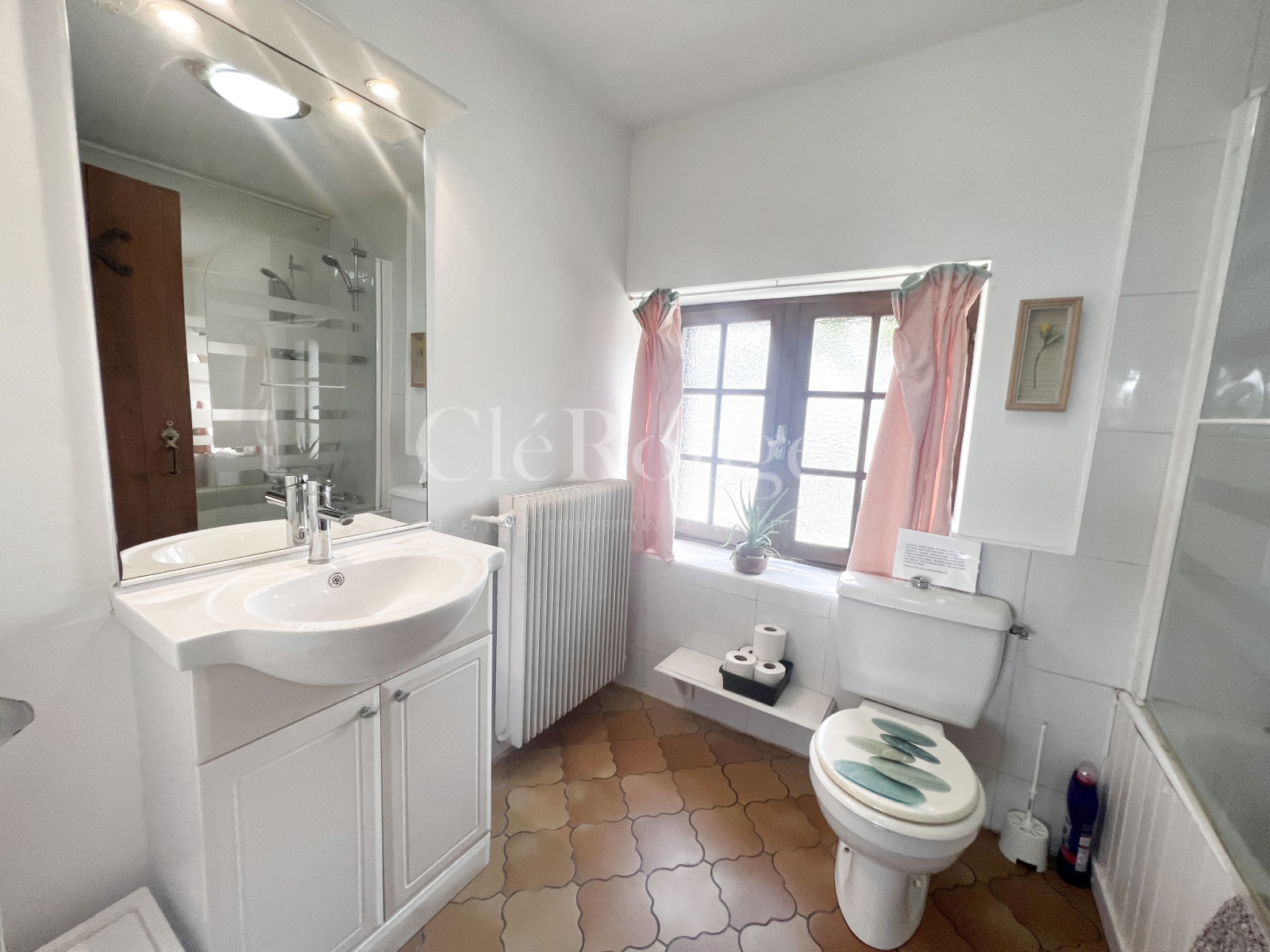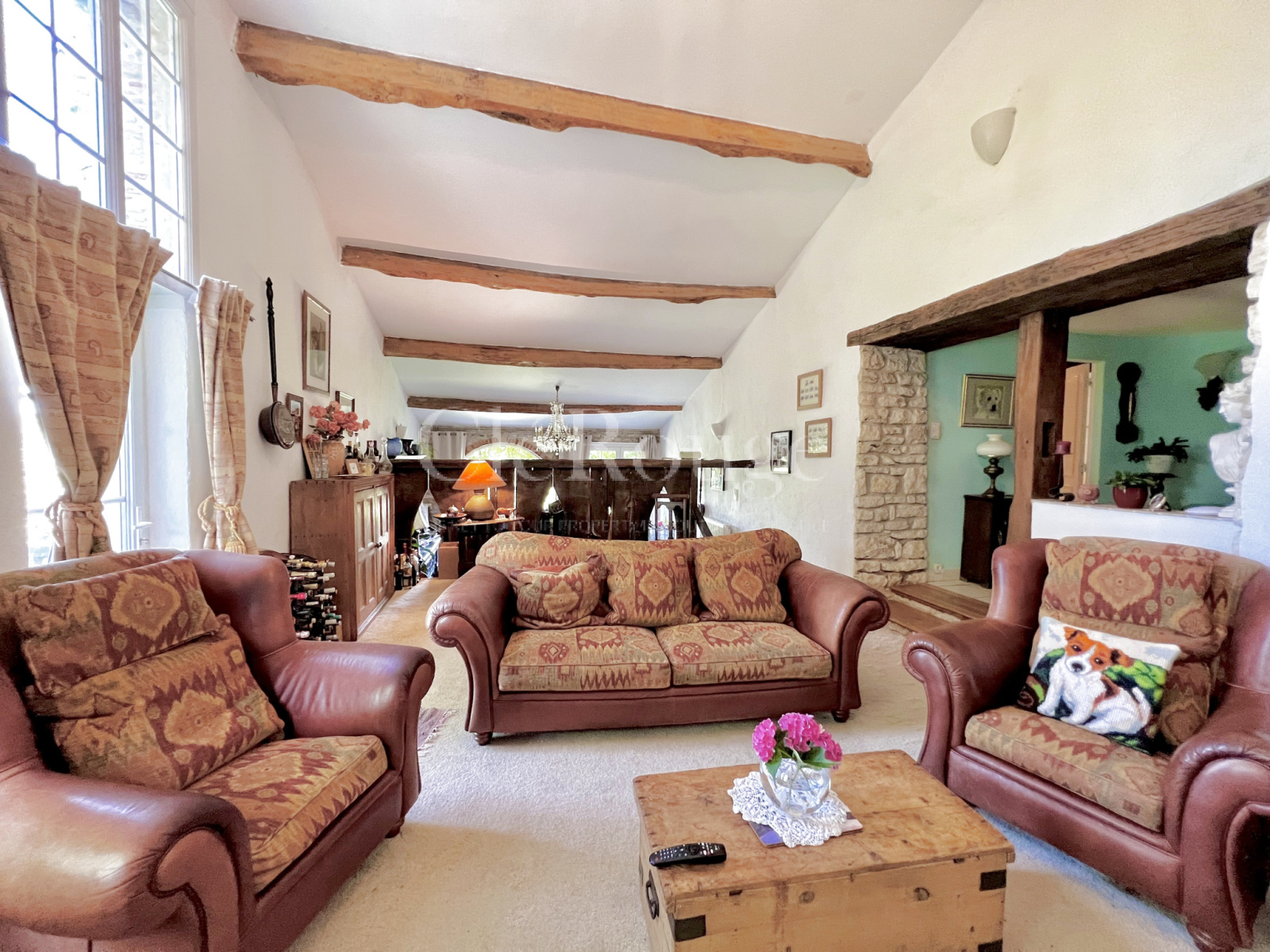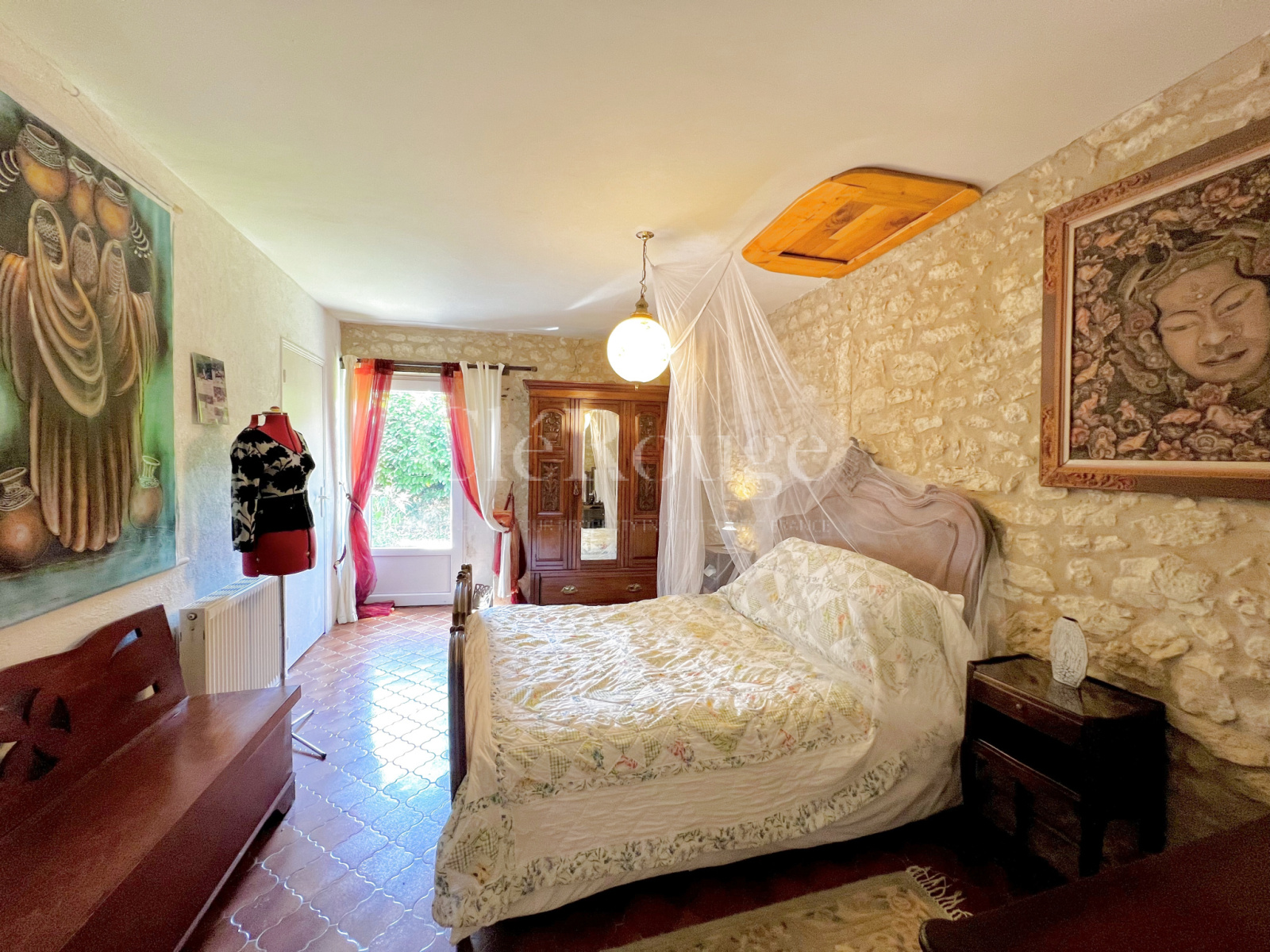 Le gîte 2 dispose d'une cuisine qui s'ouvre sur une terrasse idéale pour les repas en plein air. À l'intérieur, le salon ajoute du caractère et du charme à l'espace. Le gîte comprend également une chambre spacieuse au rez-de-chaussée avec une salle d'eau attenante. En outre, au niveau de la mezzanine, vous trouverez une autre grande chambre avec sa propre salle d'eau. Une porte relie le gîte à la maison principale, ce qui permet d'intégrer les deux espaces si on le souhaite.