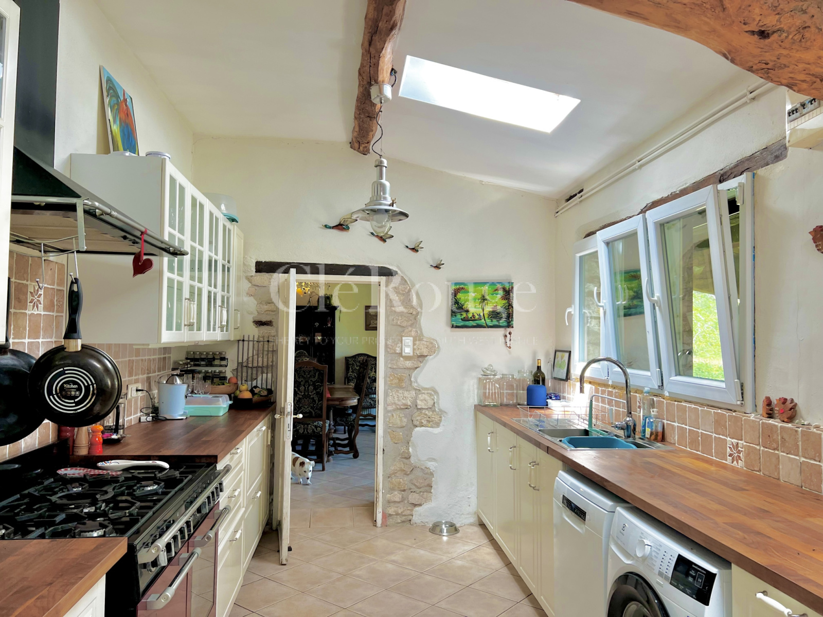La maison principale se compose d'un salon avec une cheminée, une salle à manger et une cuisine nouvellement installée qui donne sur une spacieuse terrasse couverte avec cuisine d'été. En outre, il y a quatre chambres, dont deux avec salles de bains attenantes et une autre salle de bains.