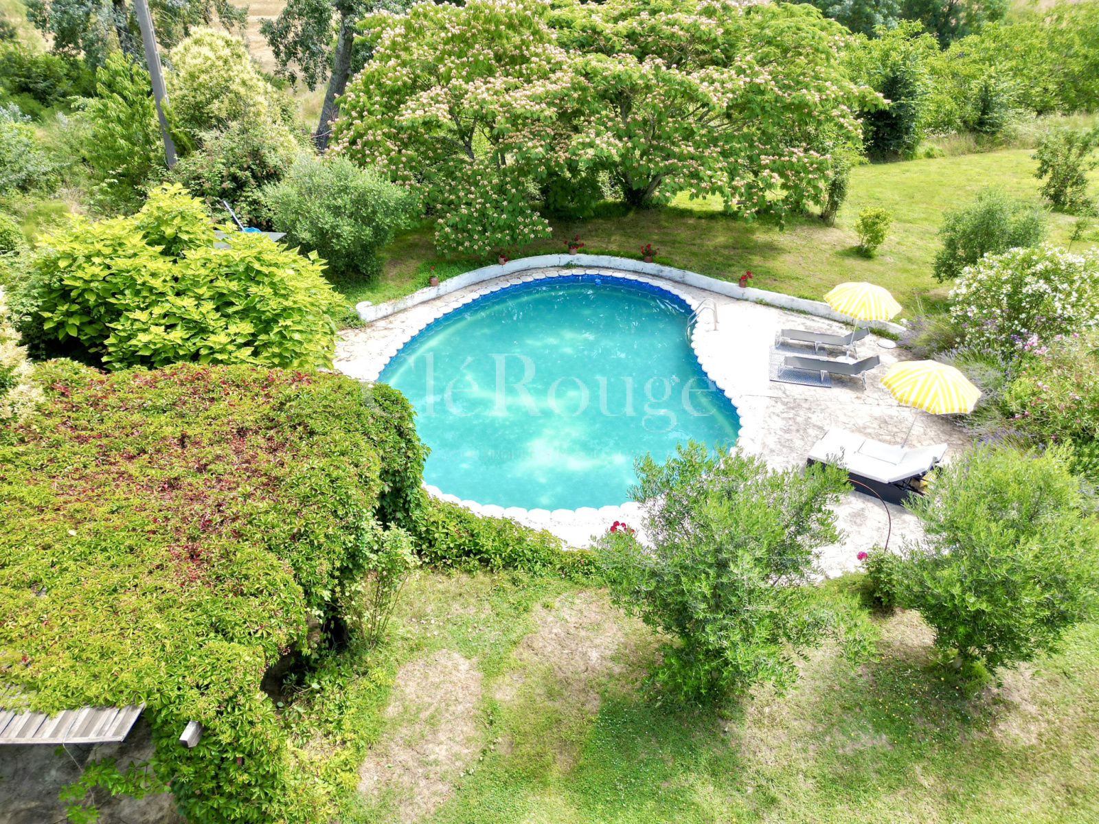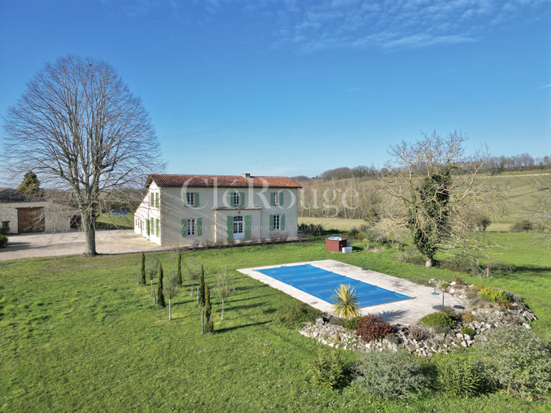 Située au bout d'un chemin tranquille, cette propriété se trouve à proximité de la charmante village de Duras, au sommet d'une colline. Le village possède un magnifique château, des boutiques, des bars, des restaurants et des vignobles à perte de vue, ce qui en fait un endroit pittoresque.