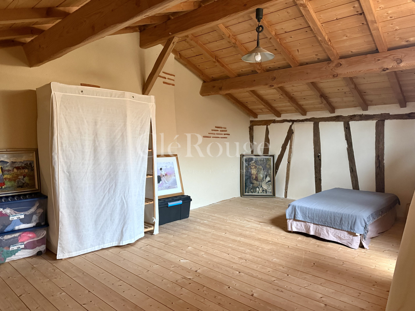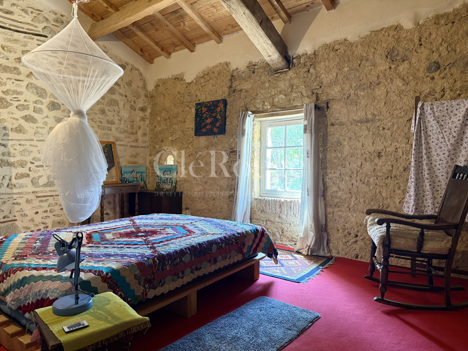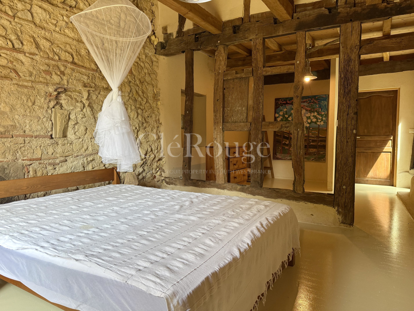 La seconde partie, plus traditionnelle mais parfaitement habitable, dispose d’un séjour, de deux chambres au rez-de-chaussée et, à l’étage, d’une grande chambre avec dressing ainsi qu’une seconde chambre.