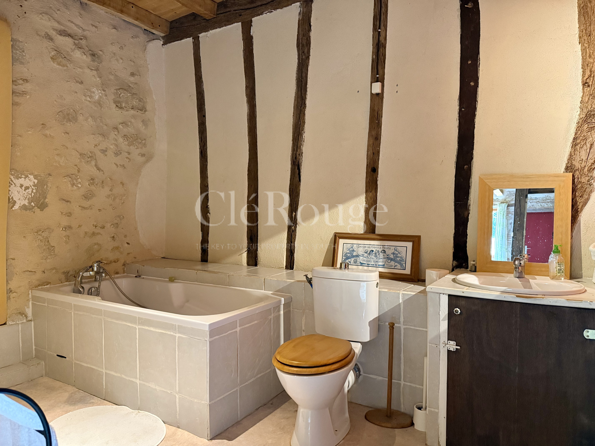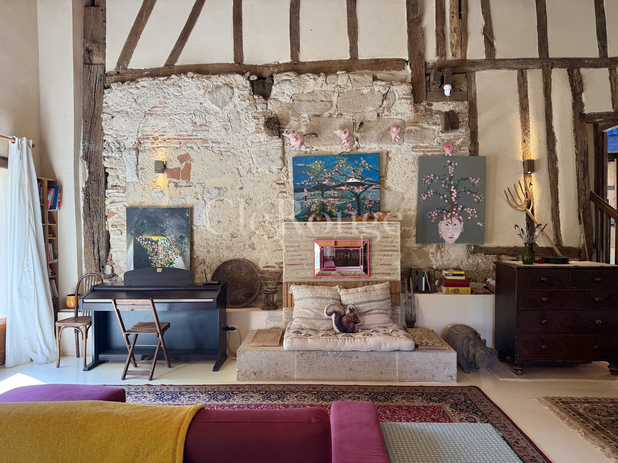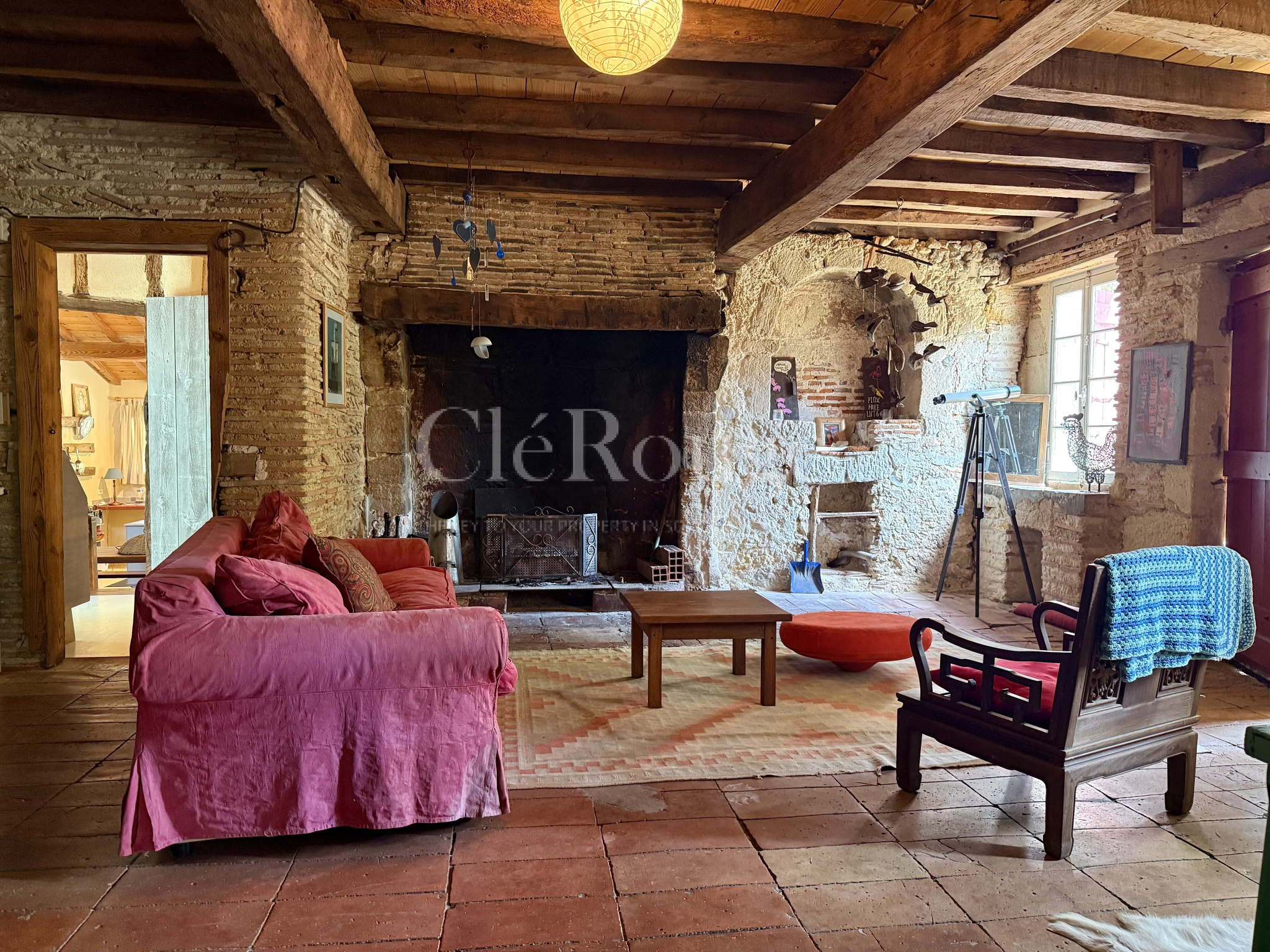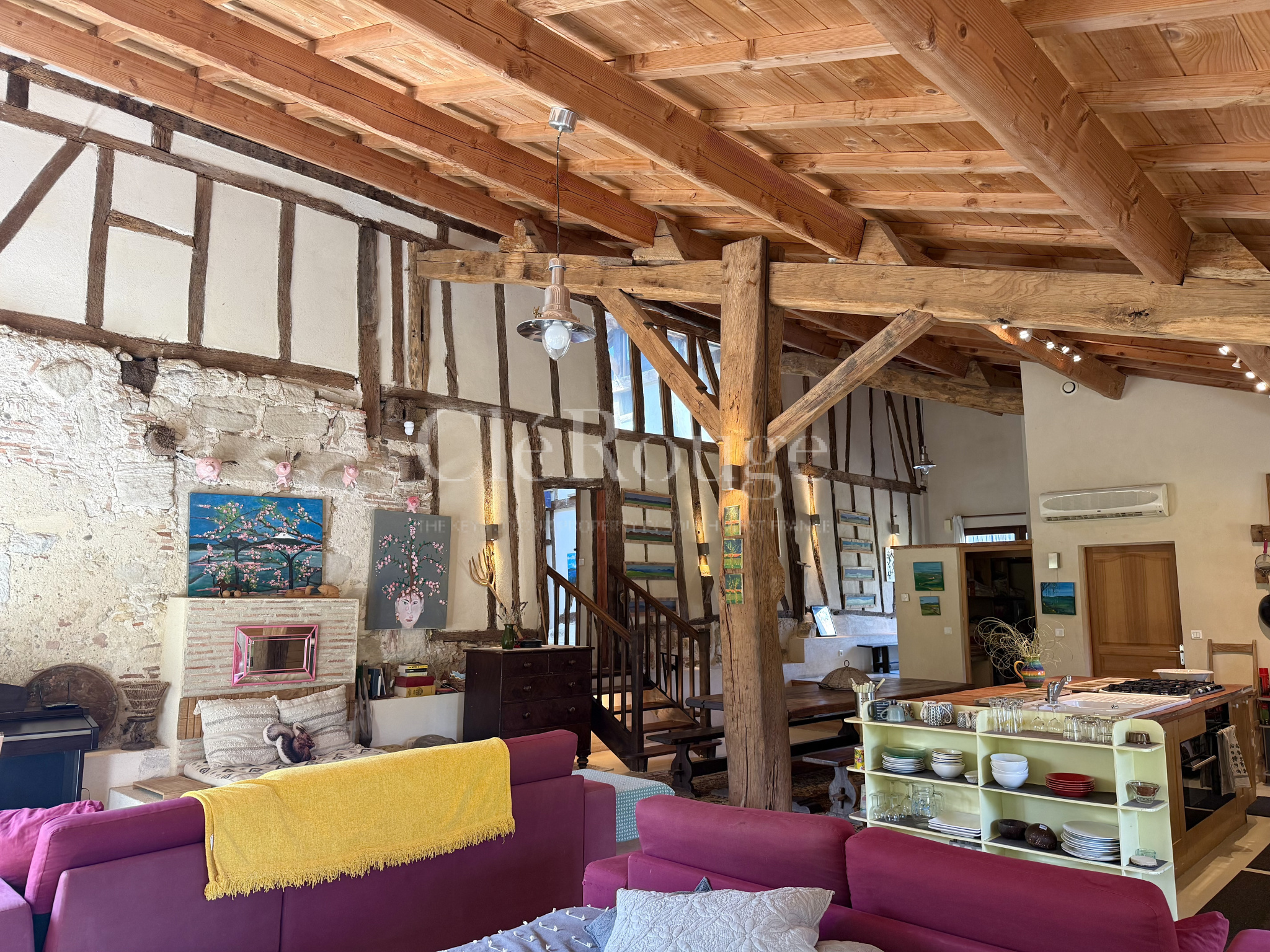 La seconde partie, plus traditionnelle mais parfaitement habitable, dispose d’un séjour, de deux chambres au rez-de-chaussée et, à l’étage, d’une grande chambre avec dressing ainsi qu’une seconde chambre.