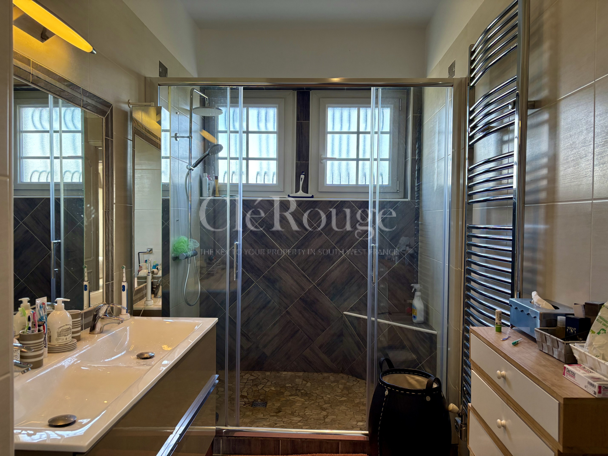 La maison propose 4 chambres confortables - l'une d'elles avec accès direct sur la terrace, des espaces de travail et de rangement, ainsi qu’un vaste garage. Entièrement rénovée avec goût et dans le respect du confort moderne, elle conjugue authenticité et prestations de qualité.