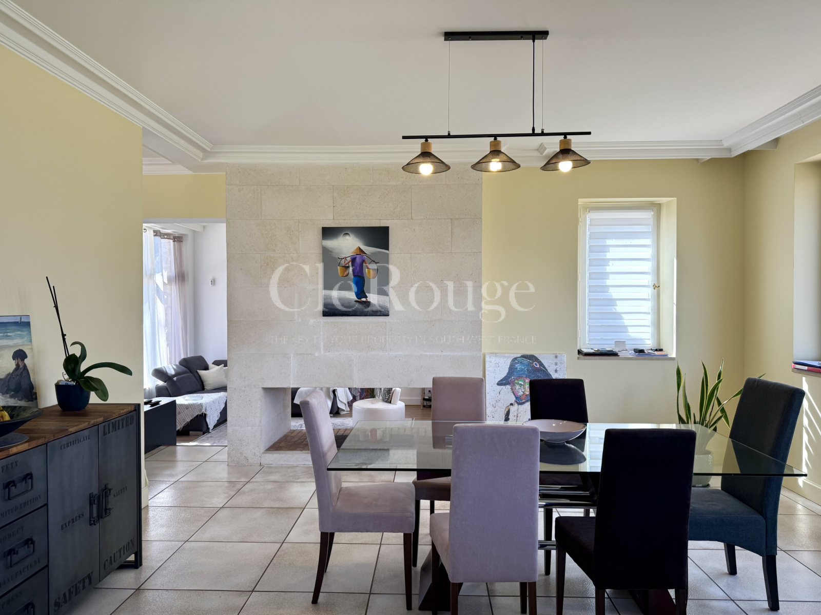 Dès l’entrée, un portail privé mène à la propriété, dévoilant une architecture élégante et des espaces généreux. L’intérieur s’ouvre sur une belle entrée qui dessert une pièce de vie lumineuse, un salon cosy et une cuisine moderne avec accès direct à un balcon offrant une vue agréable sur le jardin et la salle à manger, située avec la cuisine, complète cet espace convivial.