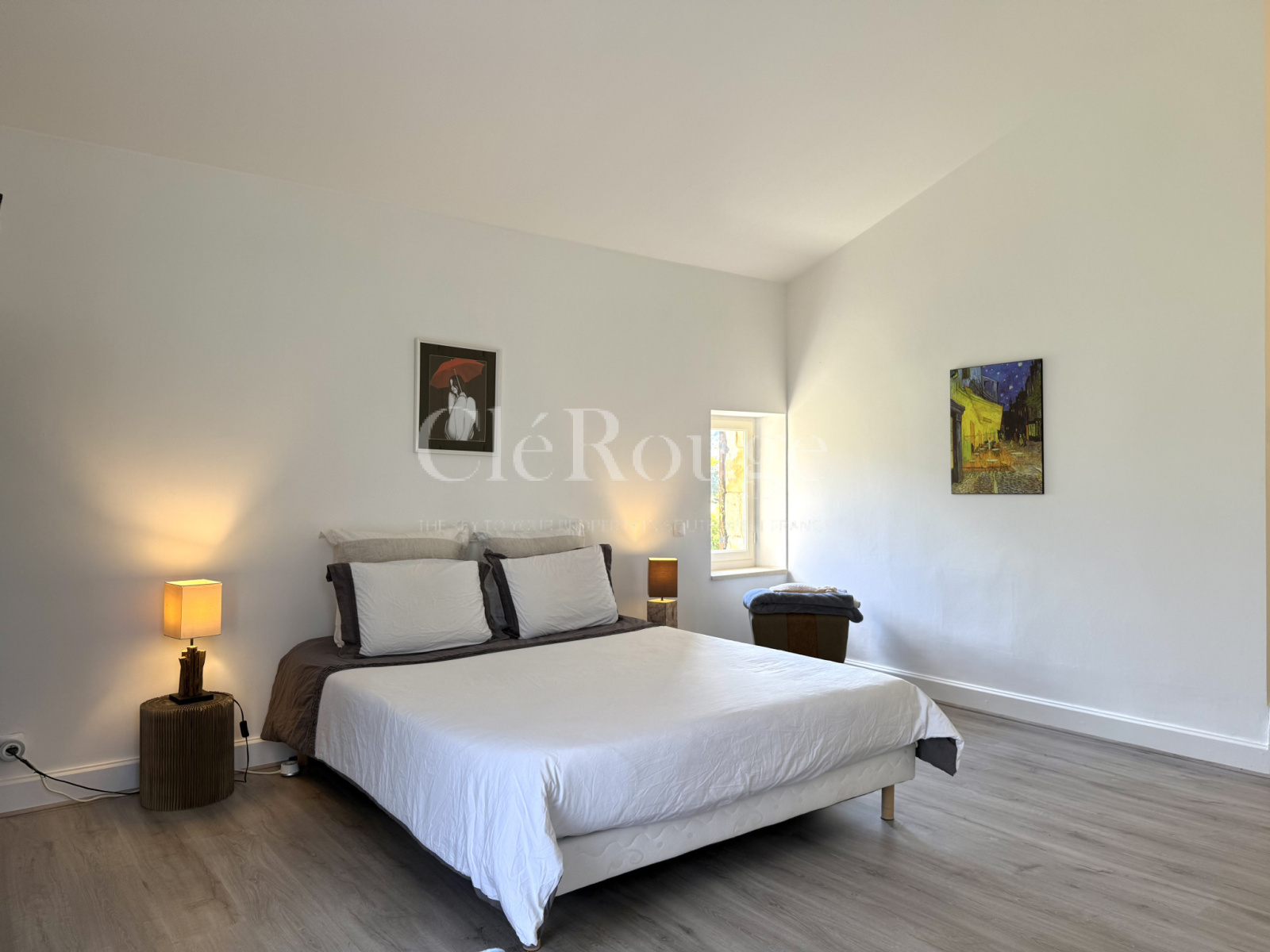Côté nuit, la maison dispose de trois suites, chacune offrant un espace confortable et intime. L’une d’elles, située à l’étage, bénéficie d’un balcon privé qui surplombe le jardin, ajoutant une touche exclusive et paisible.