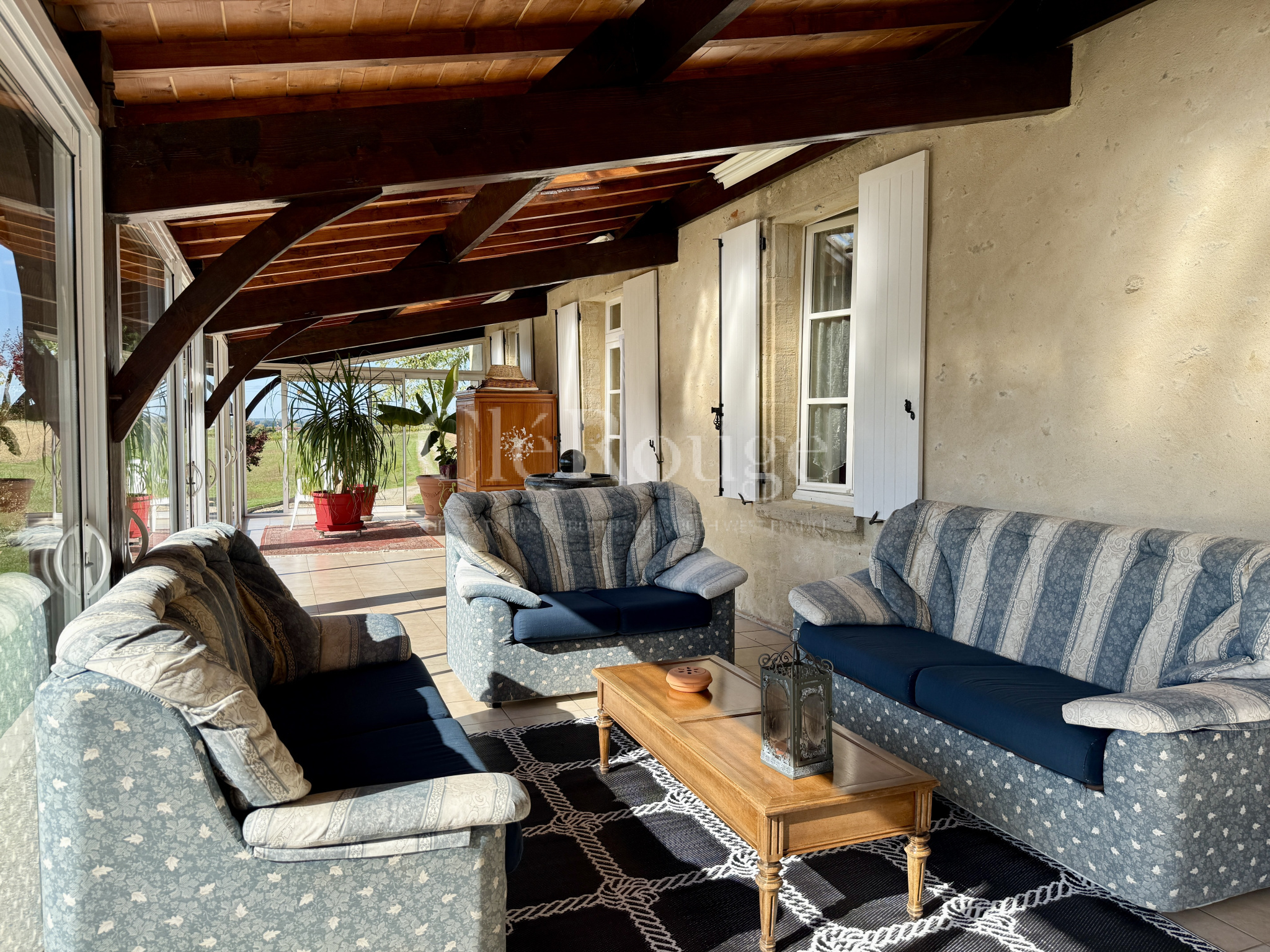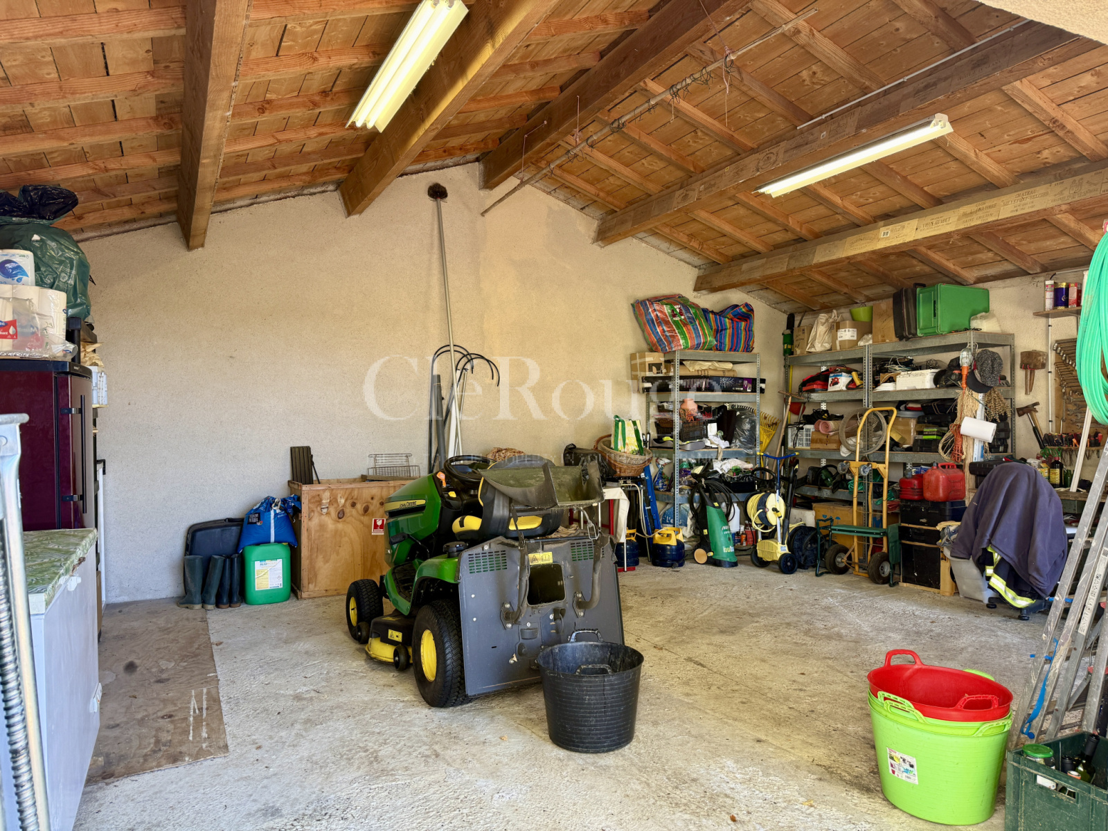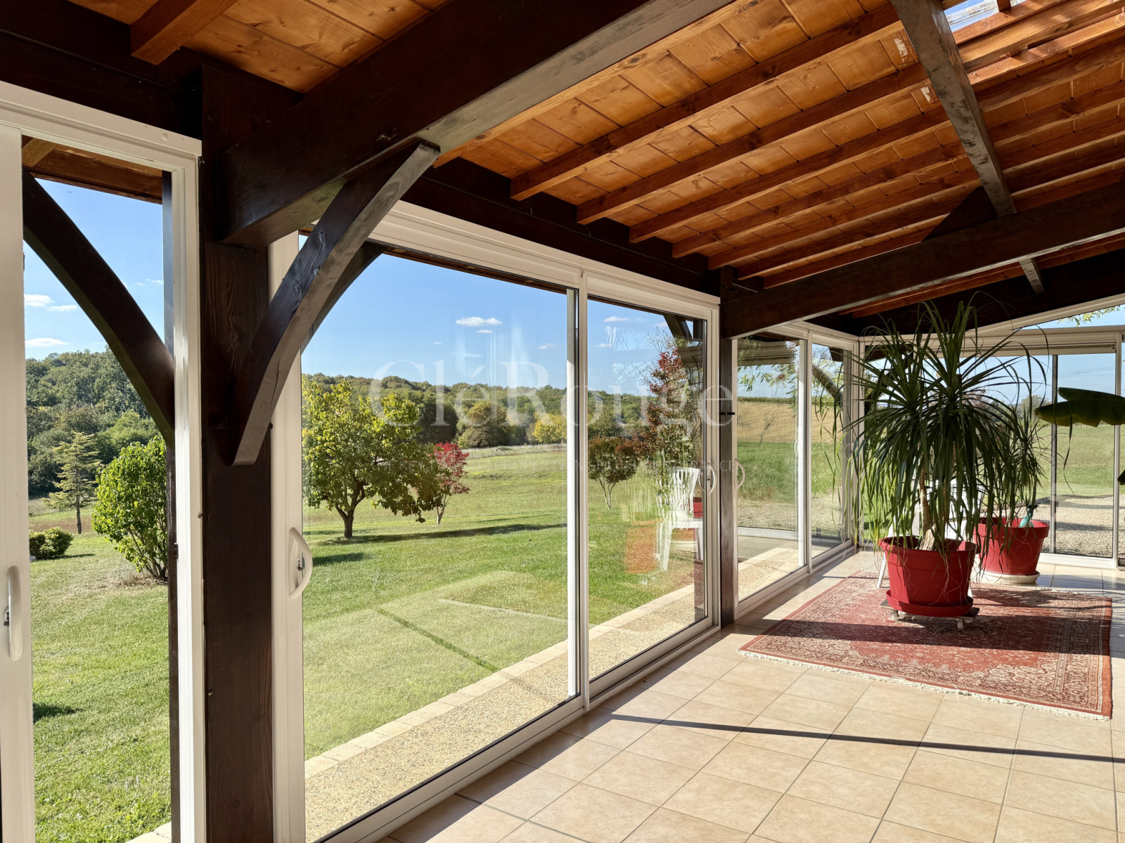 Au rez-de-chaussée, une grande cuisine équipée ouverte sur la salle à manger avec une cheminée imposante offrent un espace de vie des plus agréables. De plus sa belle hauteur sous plafond fait de cette grande pièce une pièce aéré avec beaucoup de charme. Un bureau est également disponible ainsi qu’une buanderie/chaufferie. Un salon qui est complété par une cheminée identique à celle de la salle à manger. On retrouve aussi une suite parentale qui est située à côté de la belle véranda d’environ 50 m2.