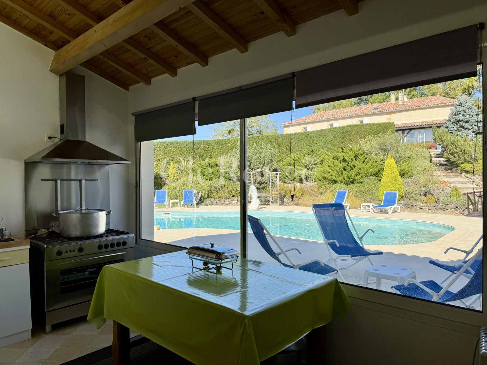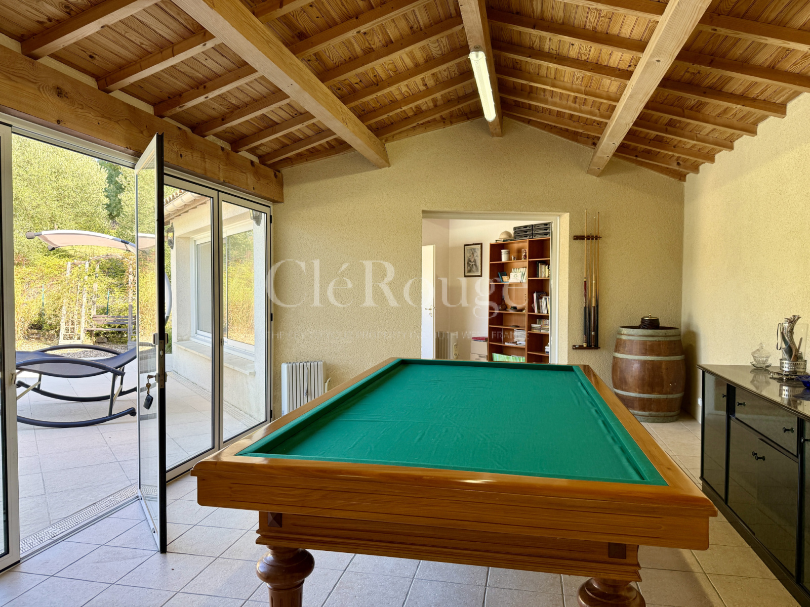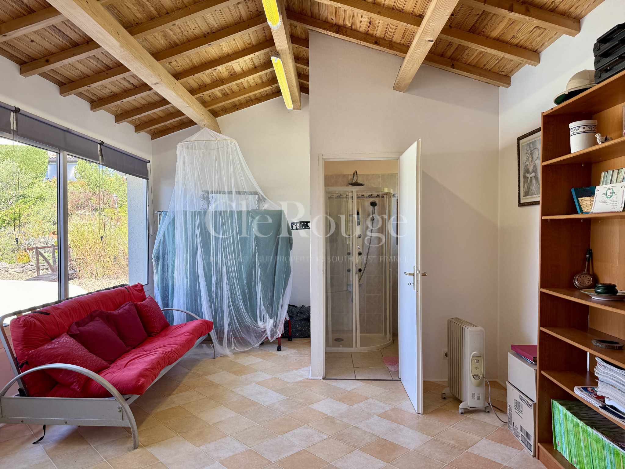 La propriété se complète par son Pool House qui est un espace de vie à part entière, il offre une pièce de vie, une cuisine et une chambre avec sa salle d’eau.