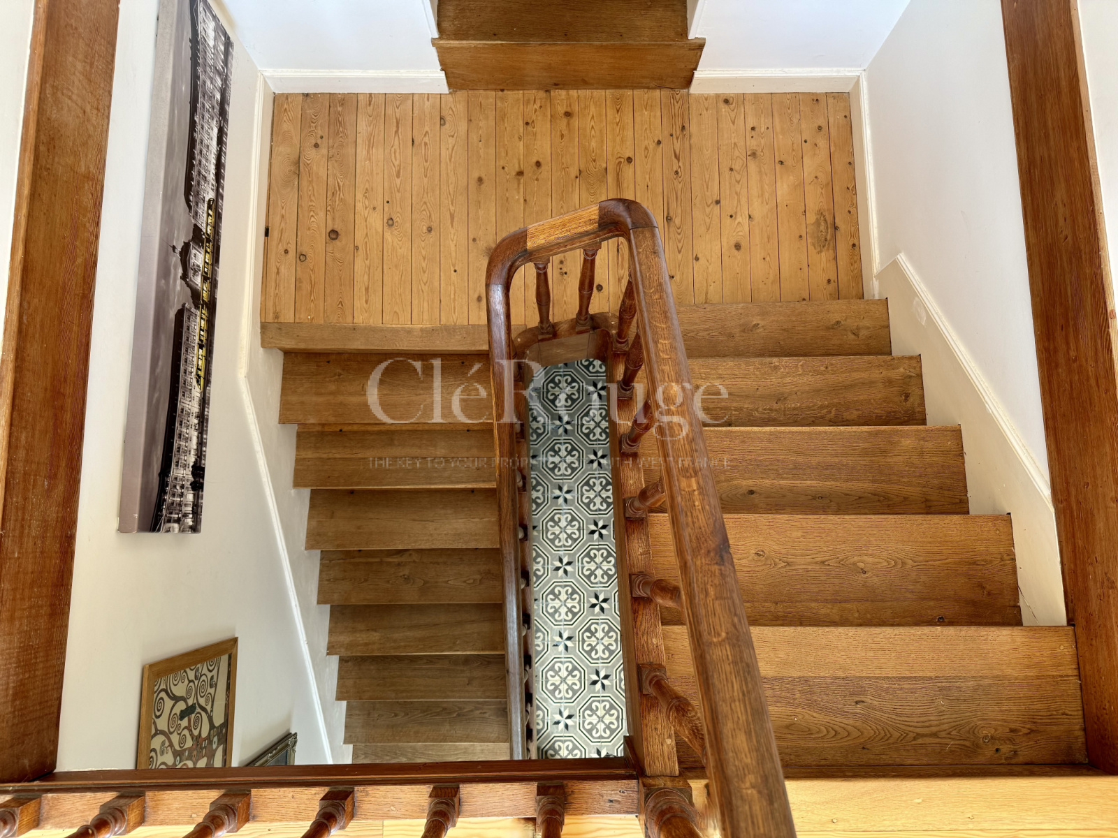 Au rez-de-chaussée, vous découvrirez une entrée avec carreaux de ciment anciens et un bel escalier en chêne menant à l’étage. La maison dispose également d’un salon/séjour lumineux, d’une bibliothèque, d’un petit salon chaleureux avec cheminée, d’une cuisine équipée aux finitions soignées, d’un garage attenant, ainsi que d’une pièce à aménager, idéale pour créer une suite parentale.