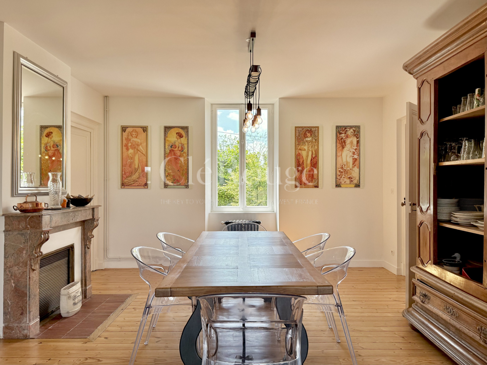 Le charme de l’ancien se retrouve dans les matériaux : carreaux de ciment au rez-de-chaussée (entrée, cuisine, petit salon), cheminée anciennes (toutes les chambres, le séjour, la bibliothèque, le petit salon) et parquets d’époque à l’étage.