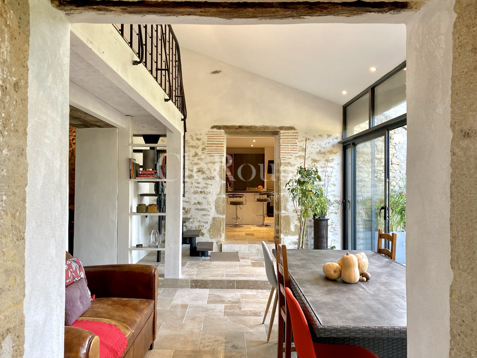 Charmante maison en pierre située dans un hameau paisible entre La Réole et Sauveterre-de-Guyenne, à seulement 2 minutes de la gare et de l'autoroute, et à 1 heure de Bordeaux. Rénovée avec goût, elle marie le charme de l'ancien et des prestations modernes, offrant confort et esthétisme dans un cadre authentique.