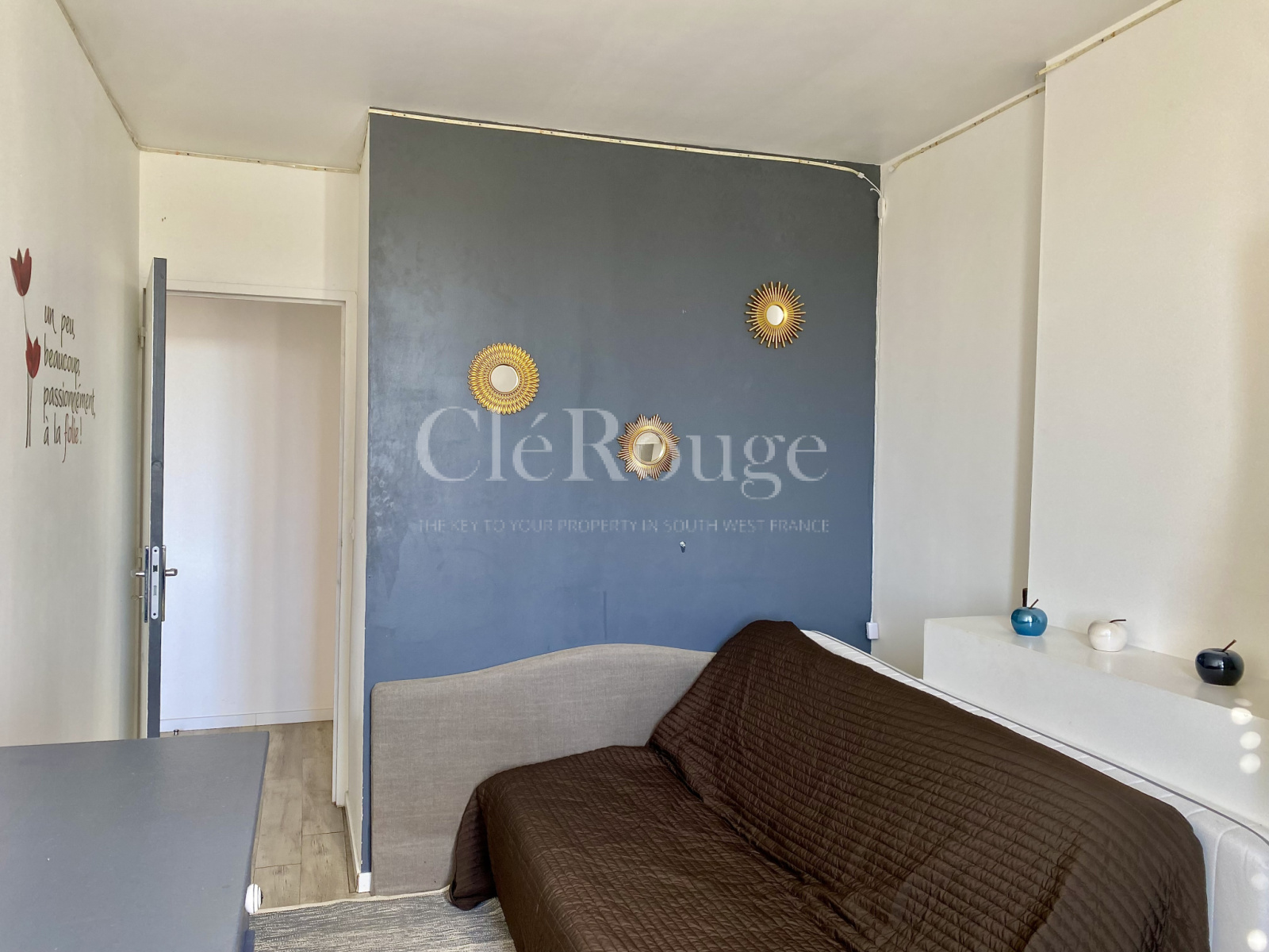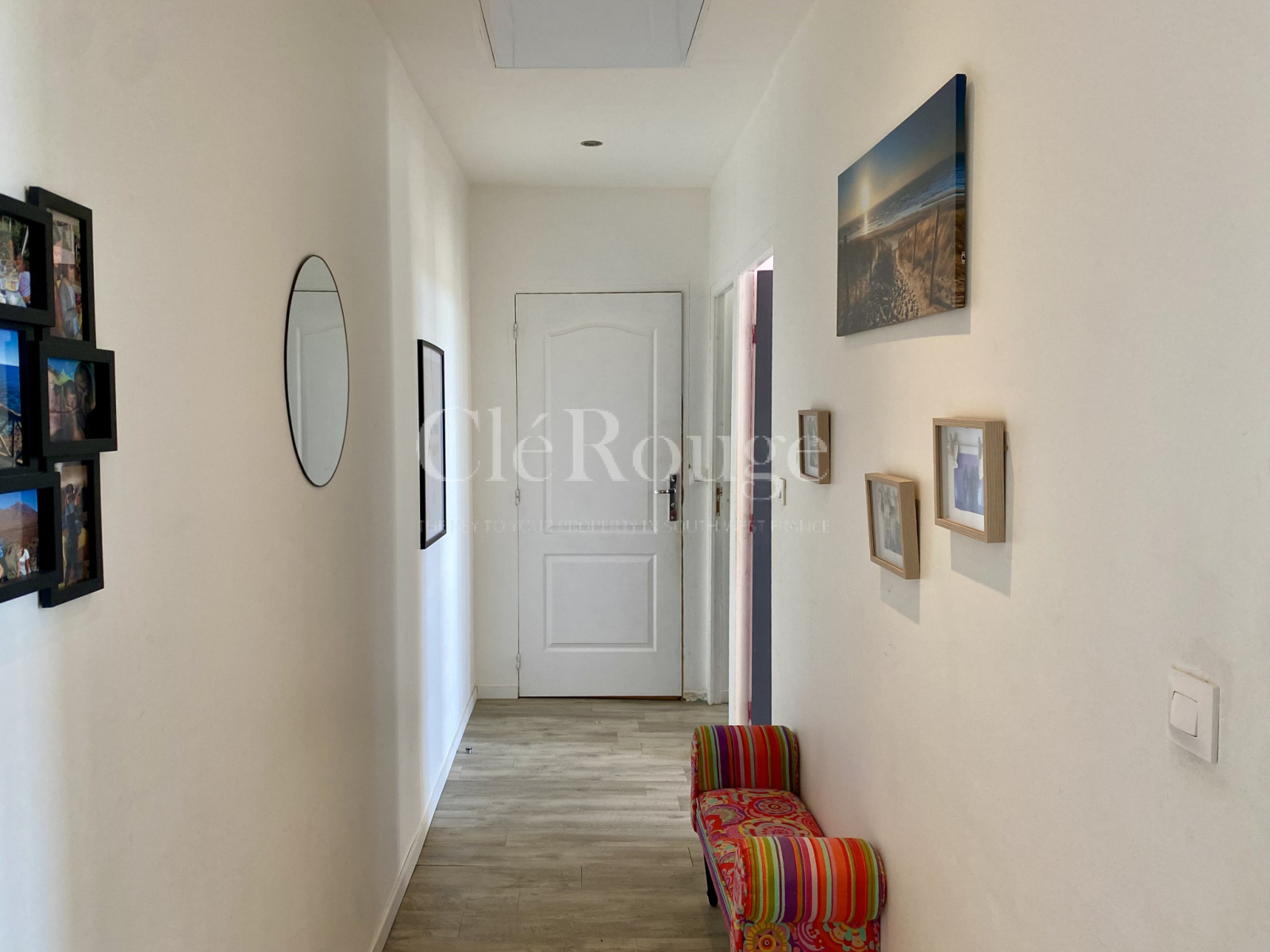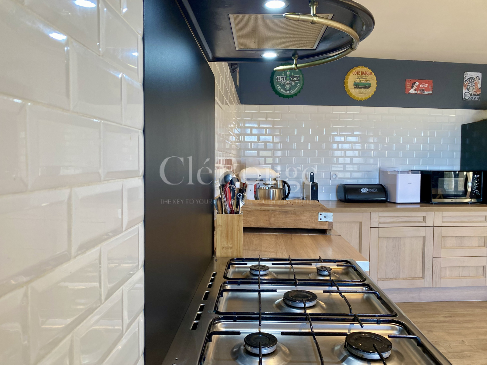 Elle dispose d’une grande cuisine aménagée, ouverte sur un séjour lumineux et convivial.