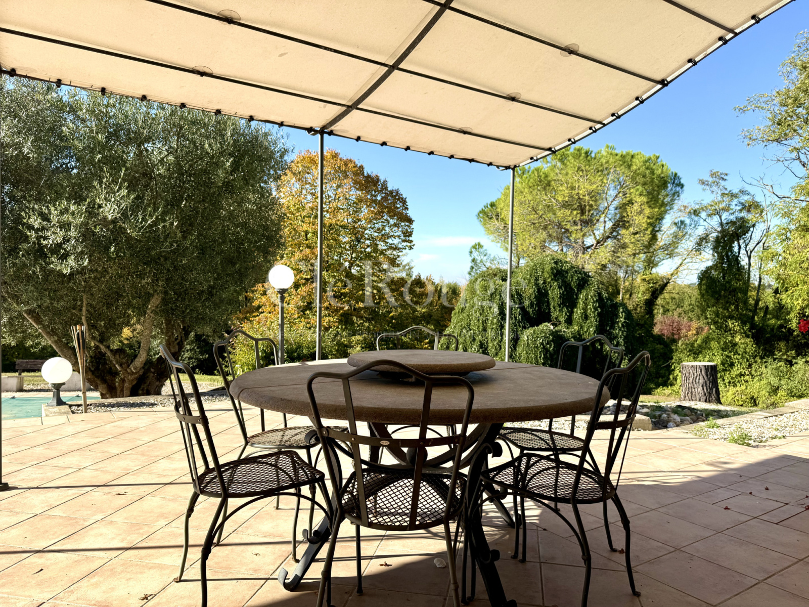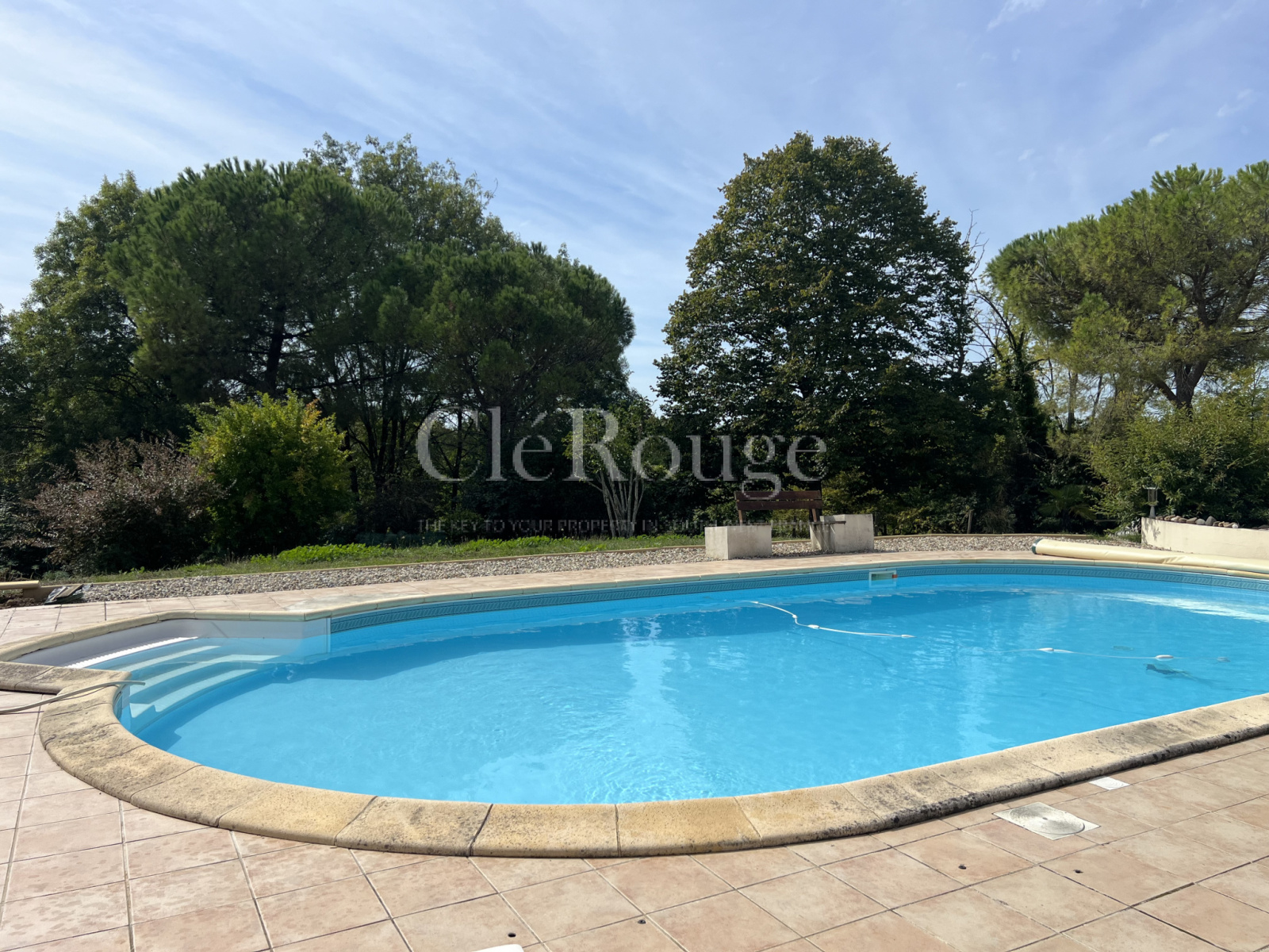 Une piscine avec son pool house complète harmonieusement cet espace extérieur, idéal pour profiter des belles journées d’été.