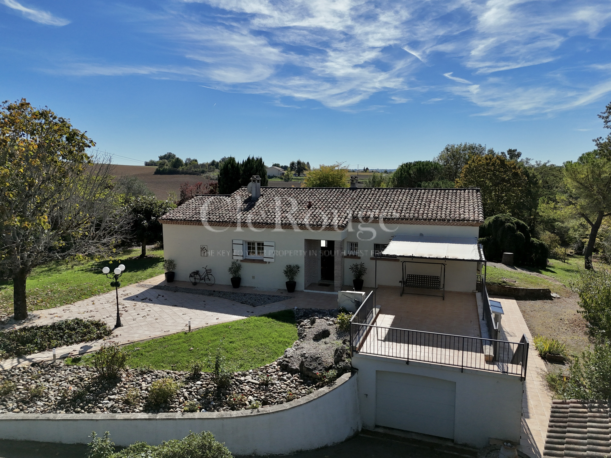 À l’extérieur, vous profiterez d’un jardin paysager soigneusement entretenu, offrant plusieurs coins de détente et une belle vue dégagée sur la campagne environnante.