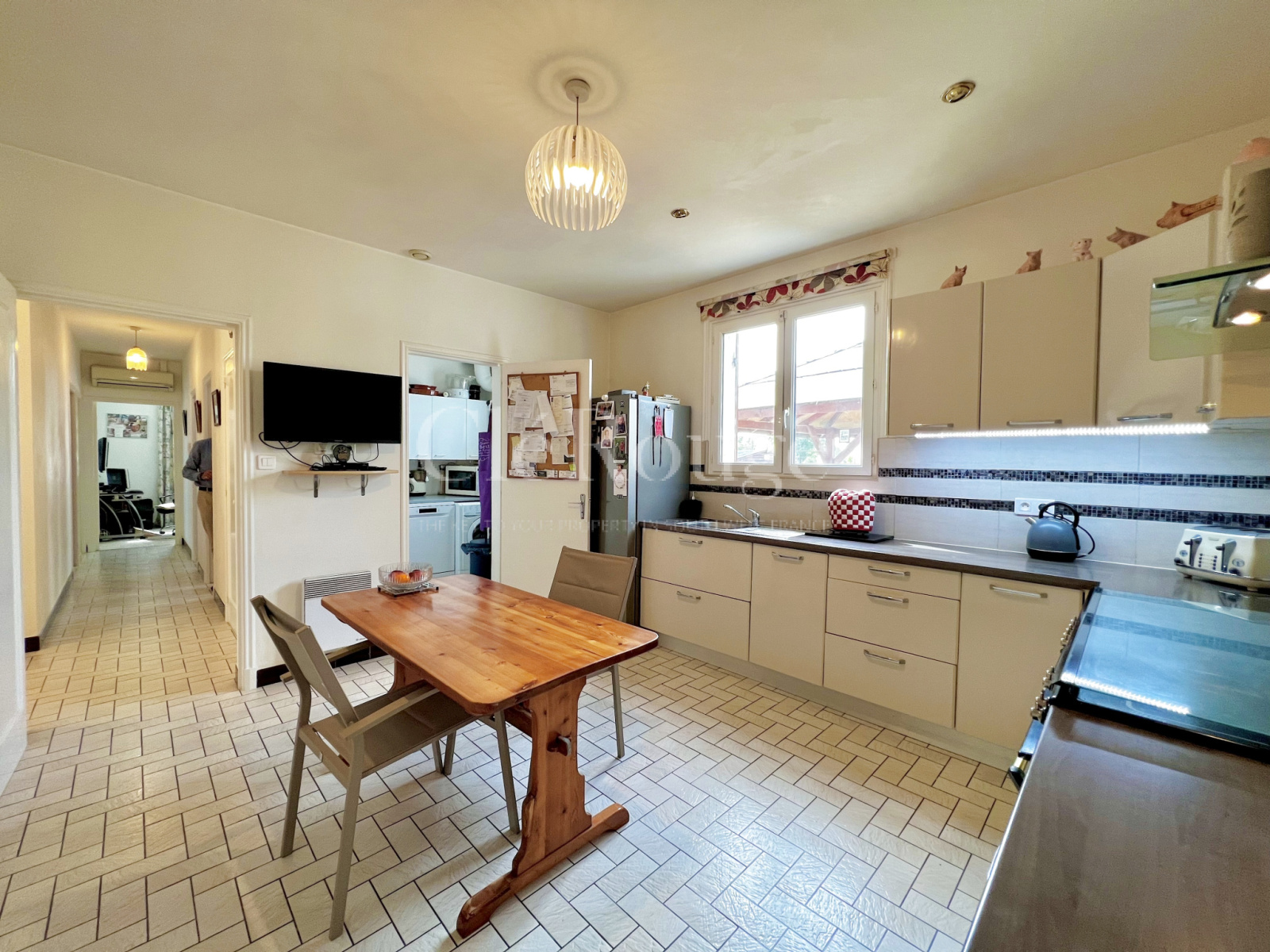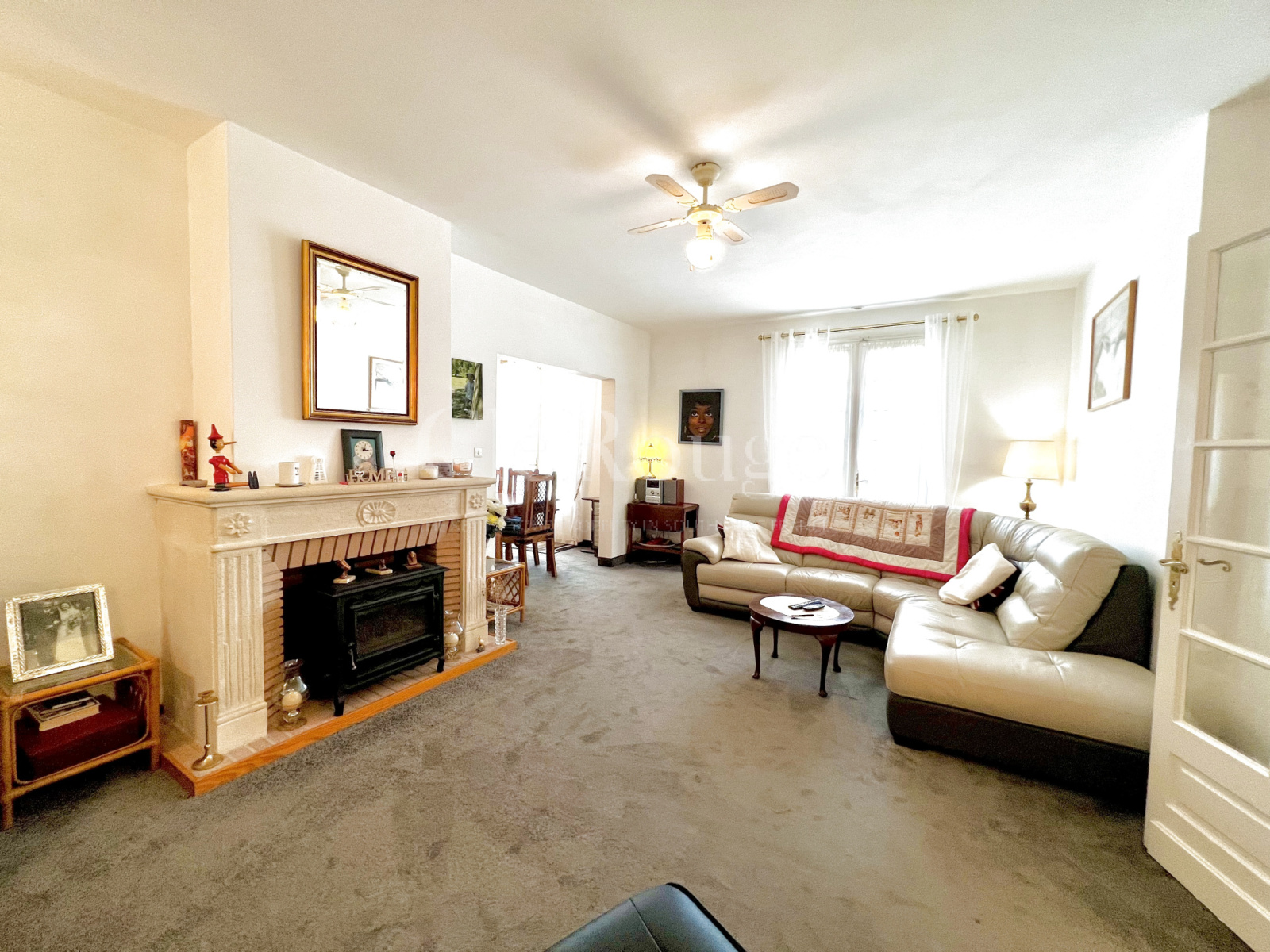 La propriété comprend trois chambres spacieuses, dont deux avec des portes-fenêtres qui s'ouvrent sur une terrasse. Le salon/salle à manger comporte également deux portes-fenêtres et une cheminée créant ainsi une ambiance lumineuse et aérée. La cuisine moderne avec vue sur le jardin arrière offre suffisamment d'espace pour une table et des chaises et donne accès à la buanderie et au garage attenant.
