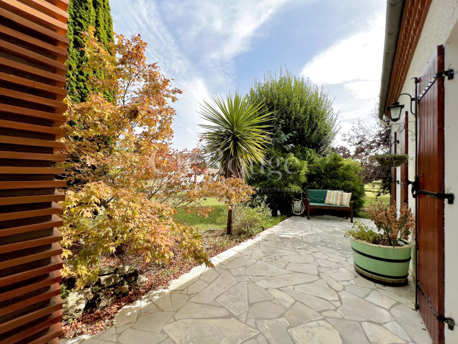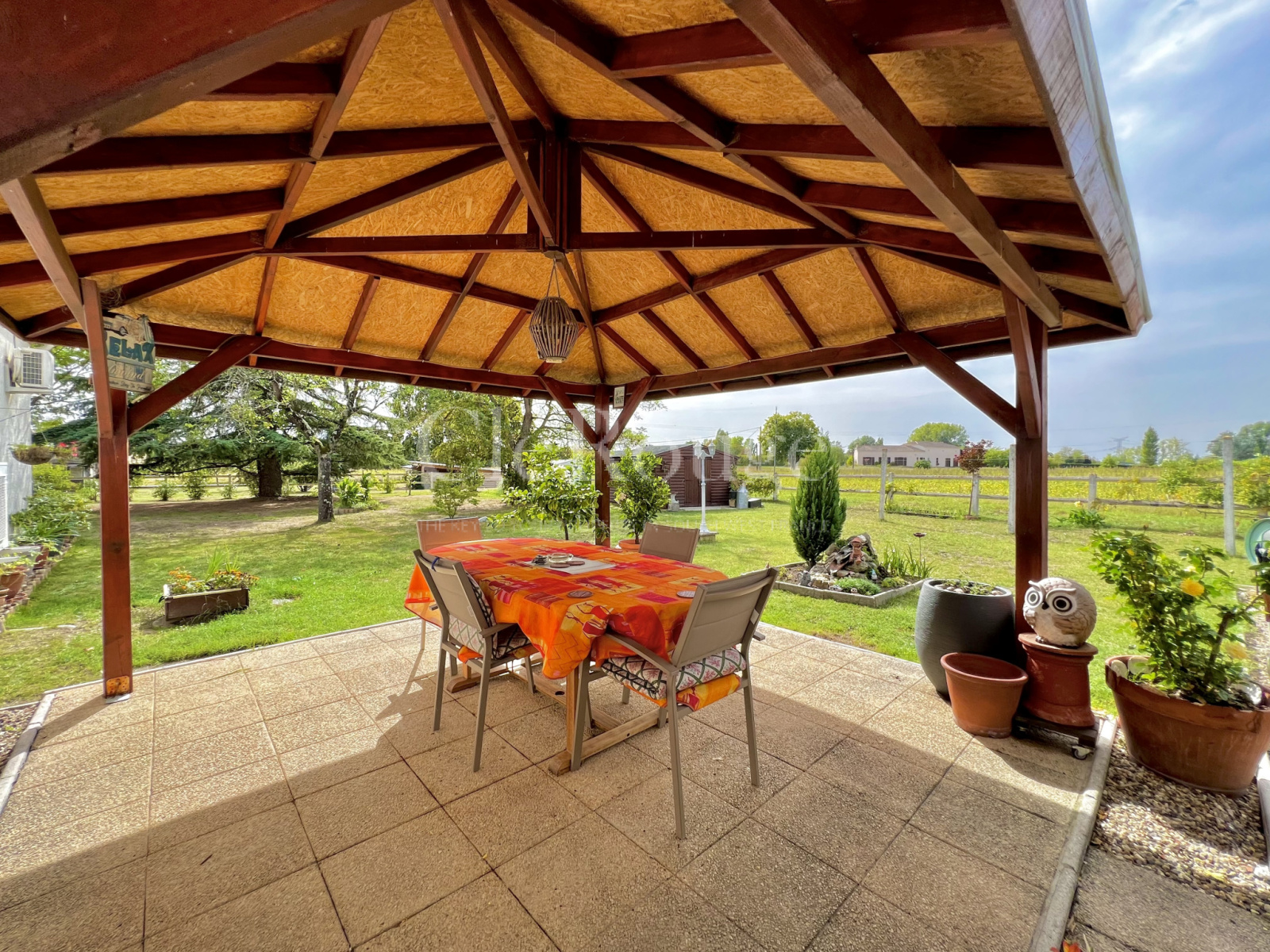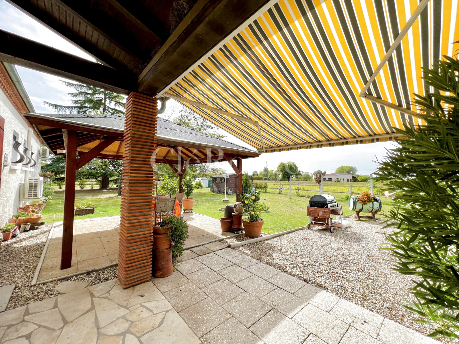 Cette charmante résidence de plain-pied, dotée d'une climatisation réversible, est nichée dans un parc paysager, à quelques pas d'un charmant village doté de nombreuses commodités.