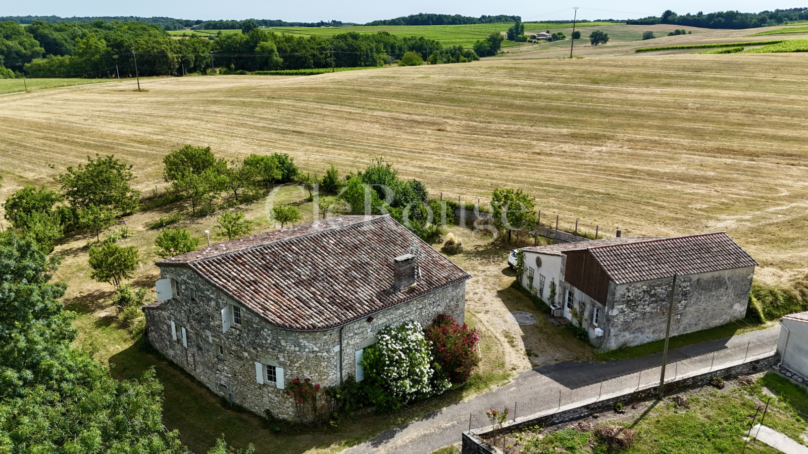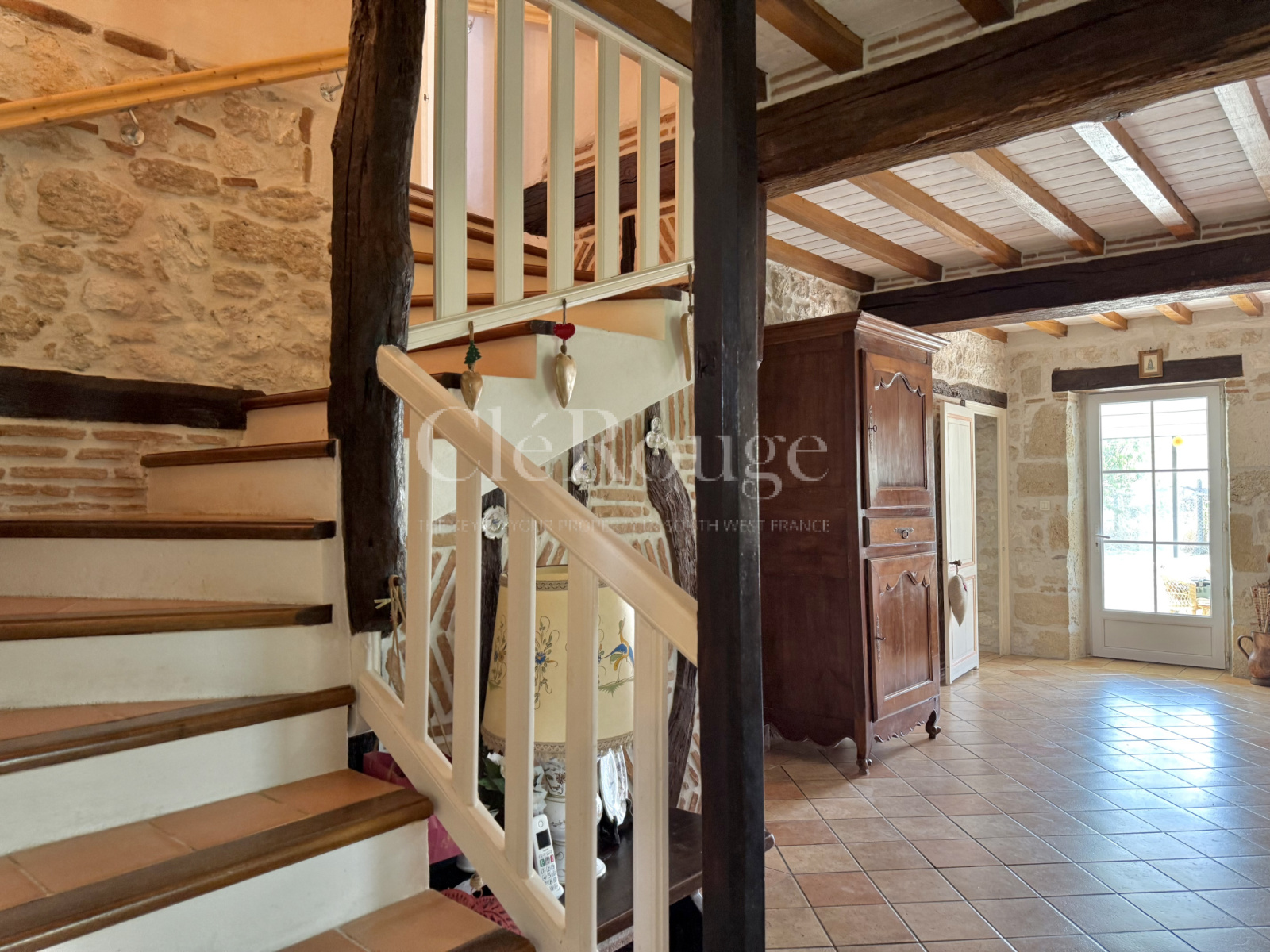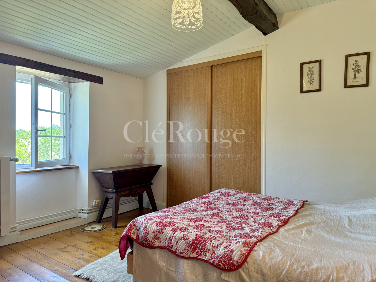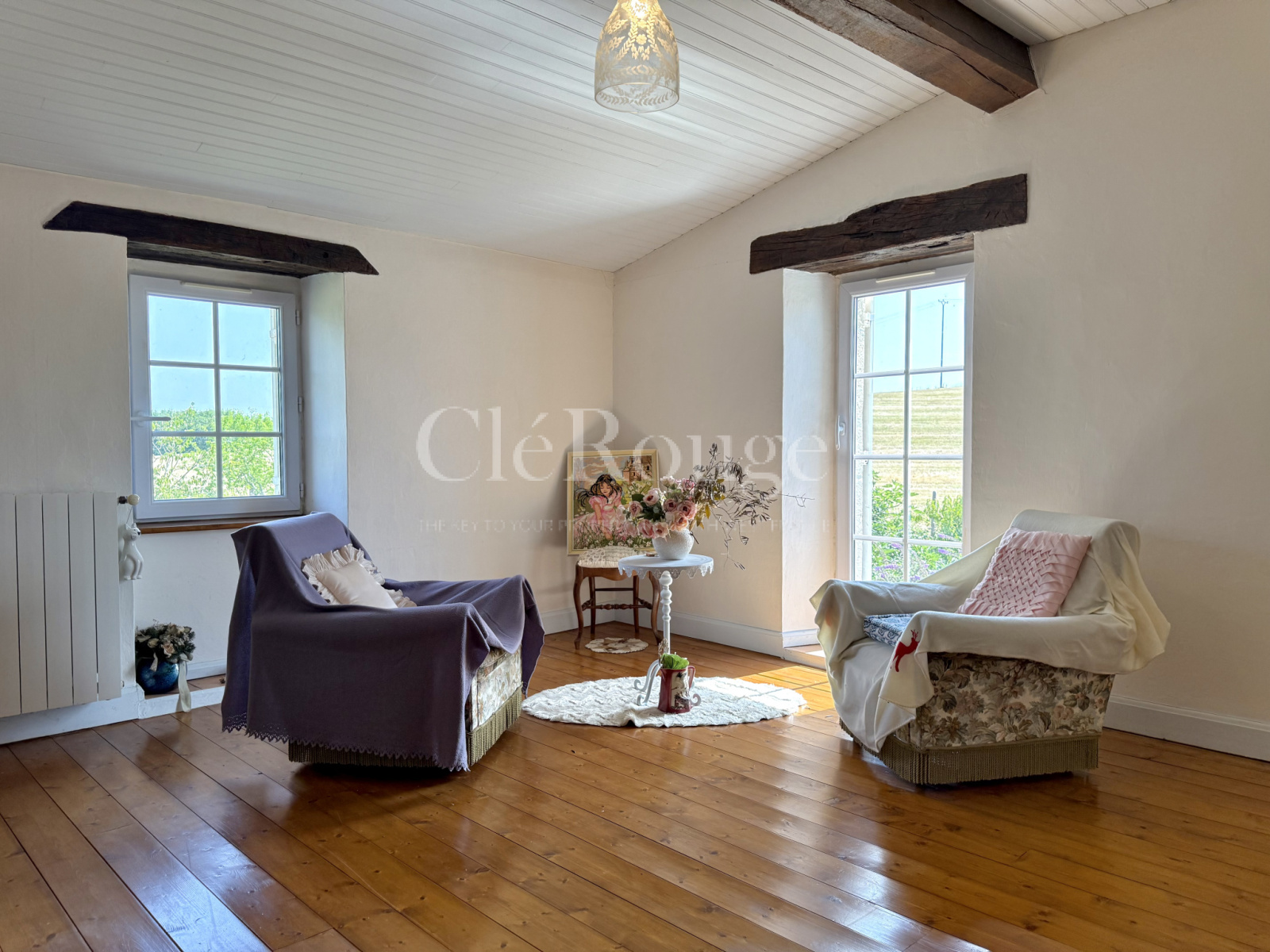 Située sur une position dominante, cette propriété offre de jolies vues sur la campagne environnante et possède de nombreux éléments d’origine conservés, tels qu'une cheminée en pierre ou encore des poutres apparentes, donnant à la maison un cachet authentique.