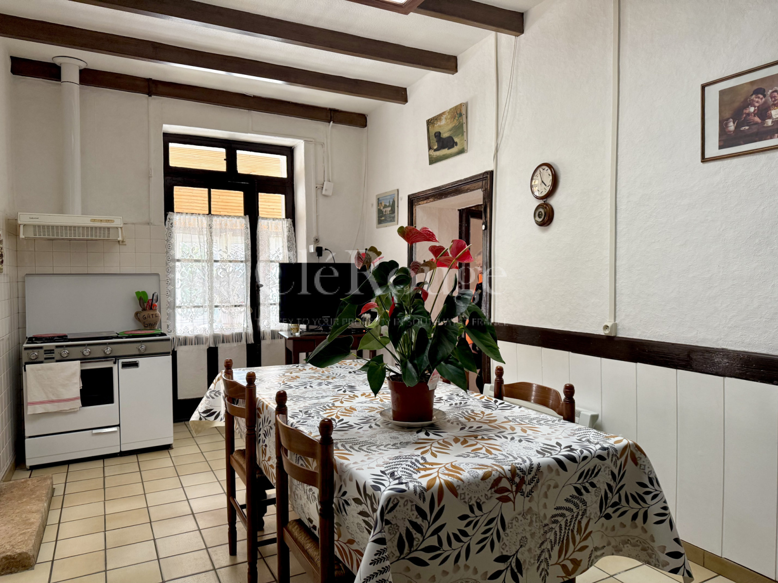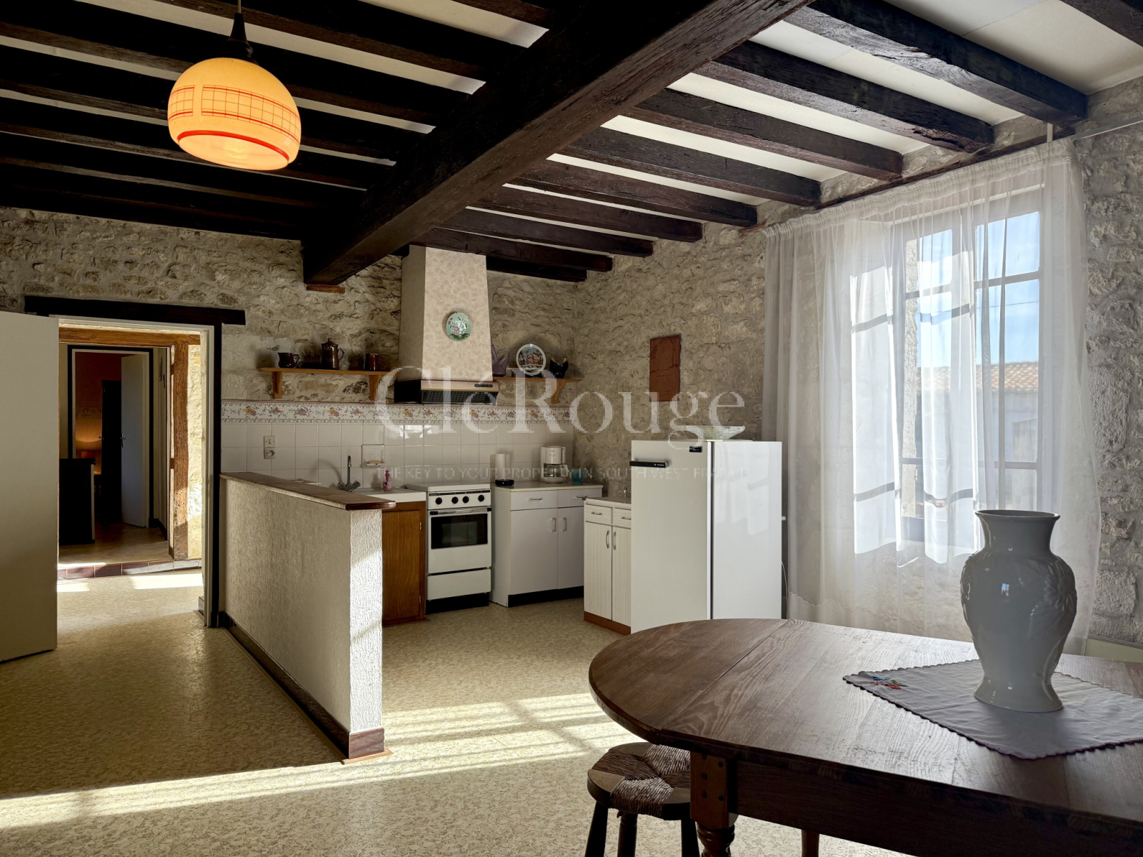Attenante à la première maison mais aussi à une propriété voisine, la deuxième habitation présente beaucoup de caractère, avec des murs en pierre apparente. Elle dispose d’une entrée, de deux chambres, d’une salle de bain, de toilettes séparées, d’un couloir et d’une pièce de vie réunissant salon et cuisine.