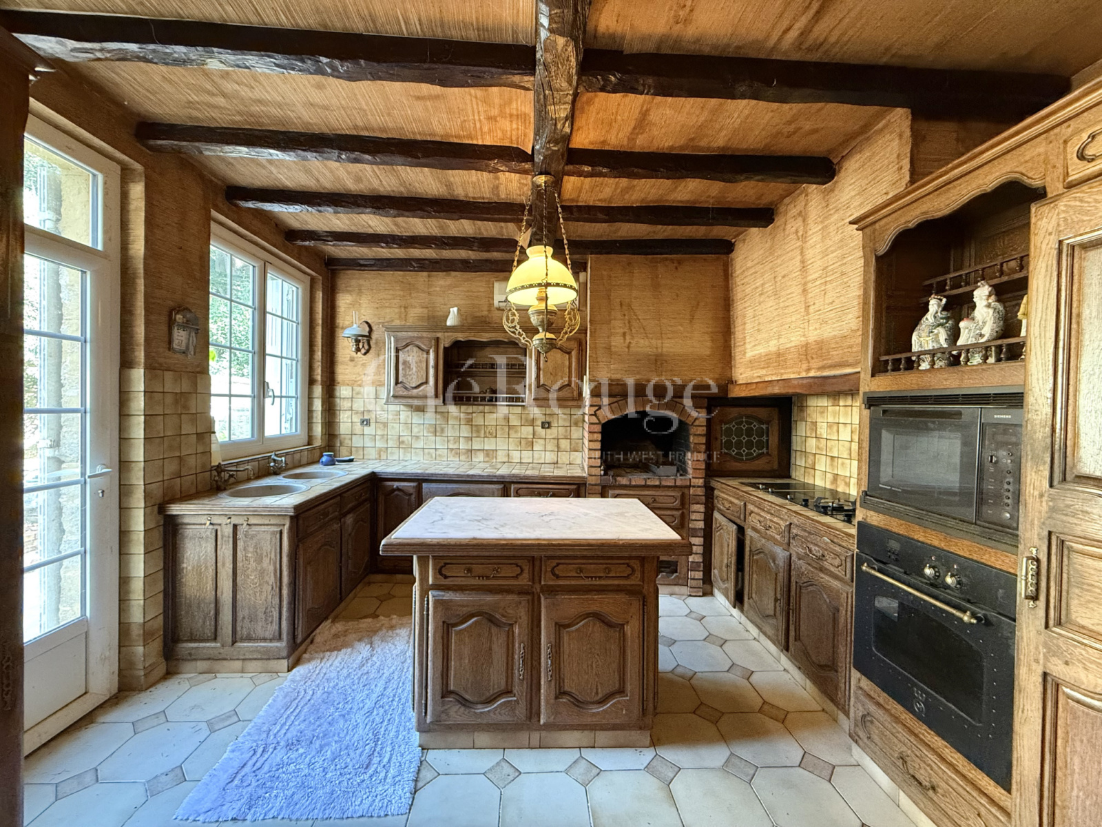 À l’extérieur, un jardin arboré vous attend, avec une cuisine d'été, un préau pour les repas en plein air et une piscine (liner à remplacer) pour profiter des beaux jours. Deux grands garages viennent compléter cet ensemble unique.