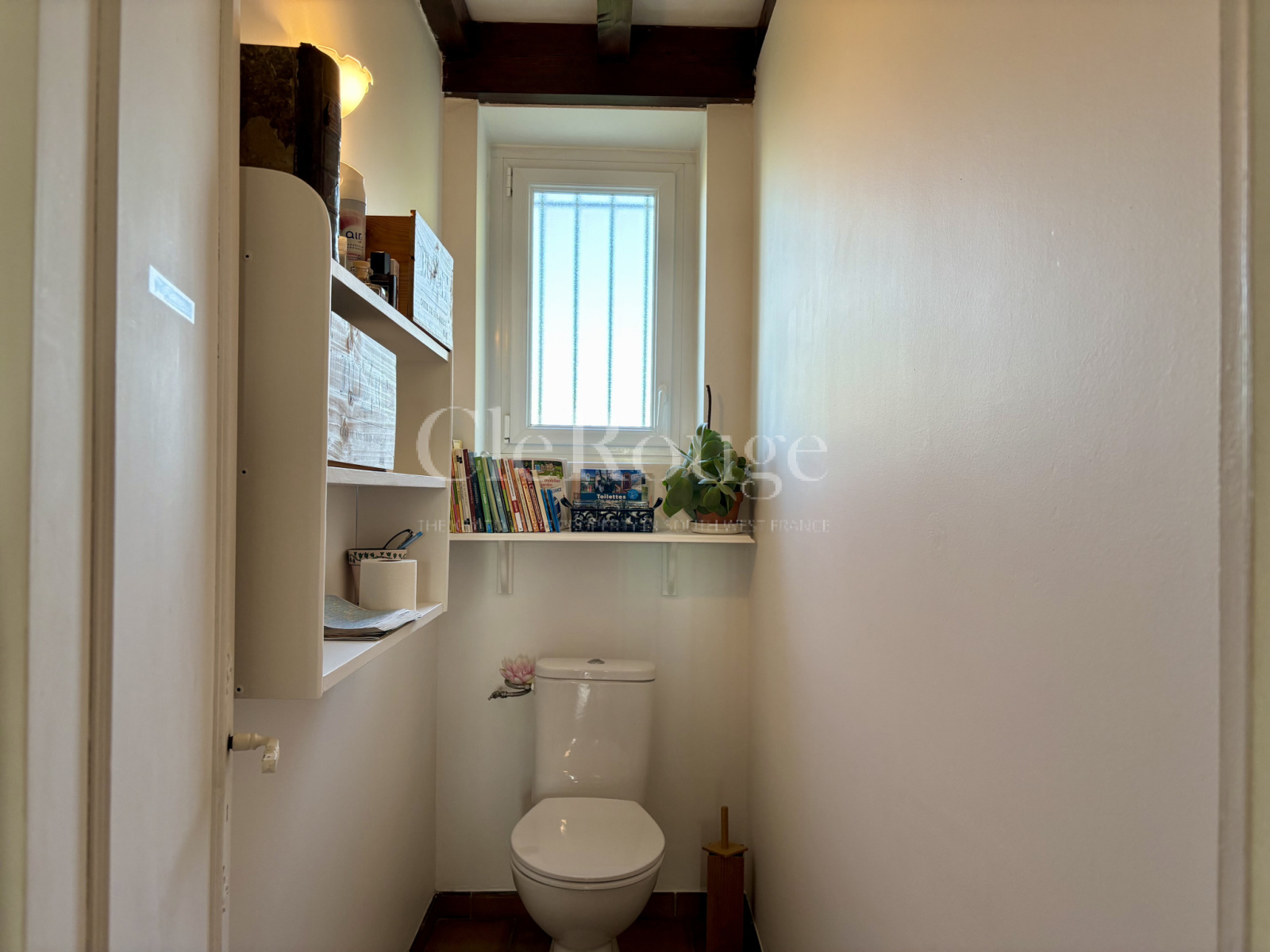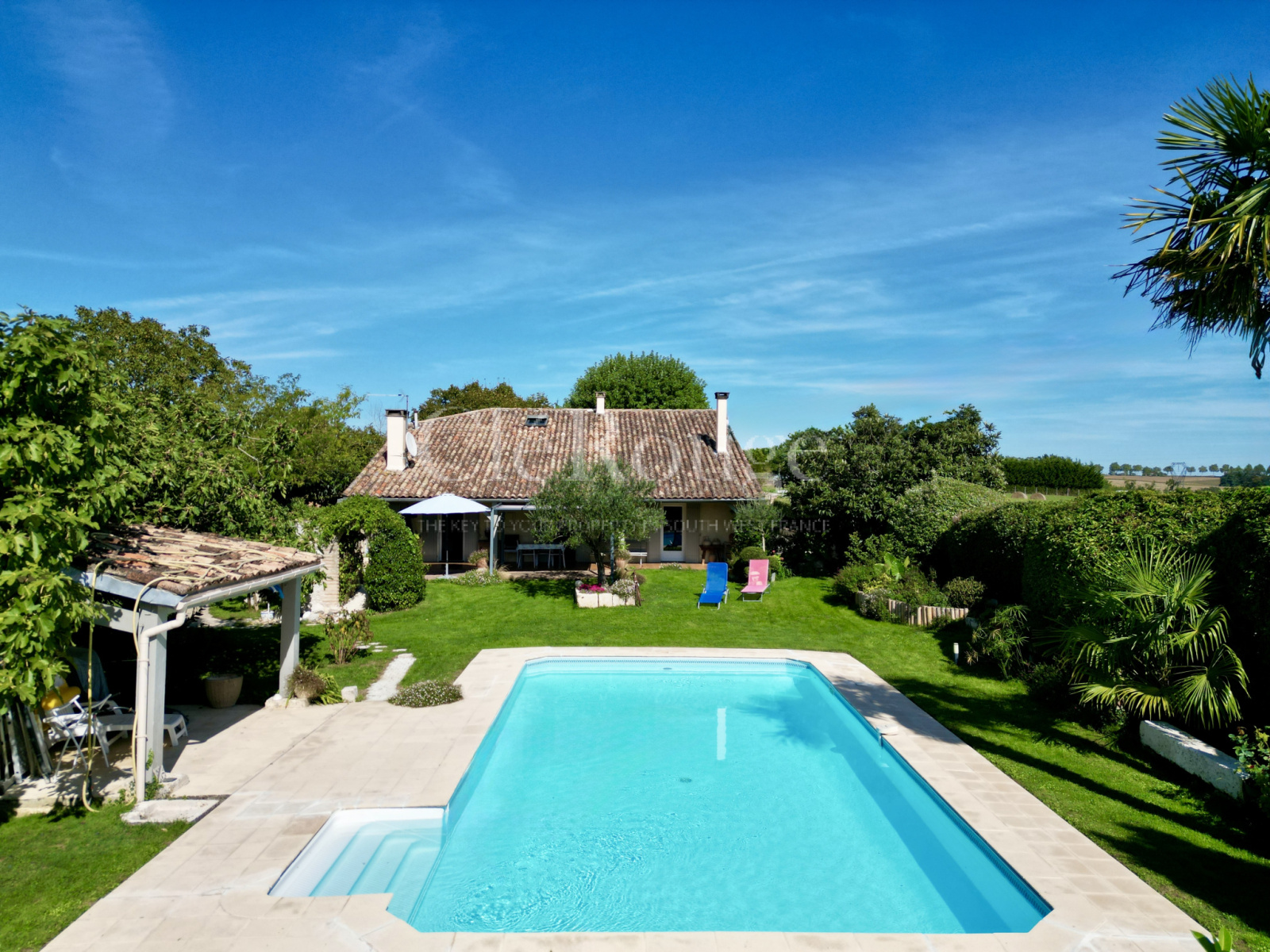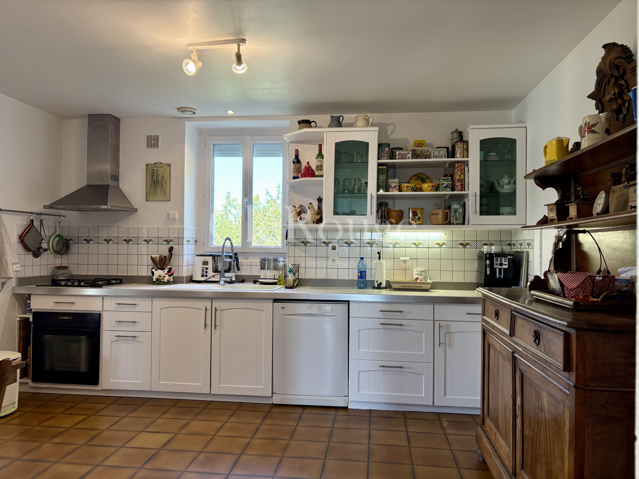 Elle dispose de quatre chambres de belle taille, idéales pour accueillir famille et amis dans une atmosphère chaleureuse. Les pièces de vie spacieuses, la cuisine et le salon, s’ouvrent directement sur la terrasse ensoleillée et la piscine, créant une agréable continuité entre intérieur et extérieur. Une terrasse couverte permet également de profiter pleinement des journées d’été et des soirées douces, à l’abri du soleil.