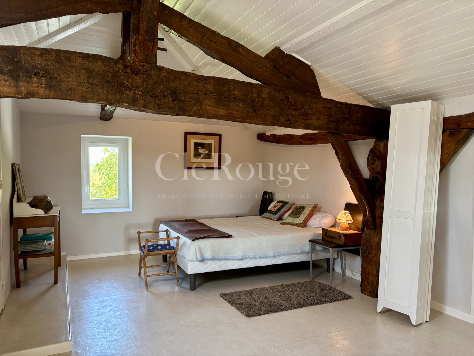 Entourée d’un magnifique jardin fruitier, de vignes et d’un potager généreux, la propriété offre une véritable parenthèse de nature, sublimée par de belles vues dégagées sur la campagne environnante.
