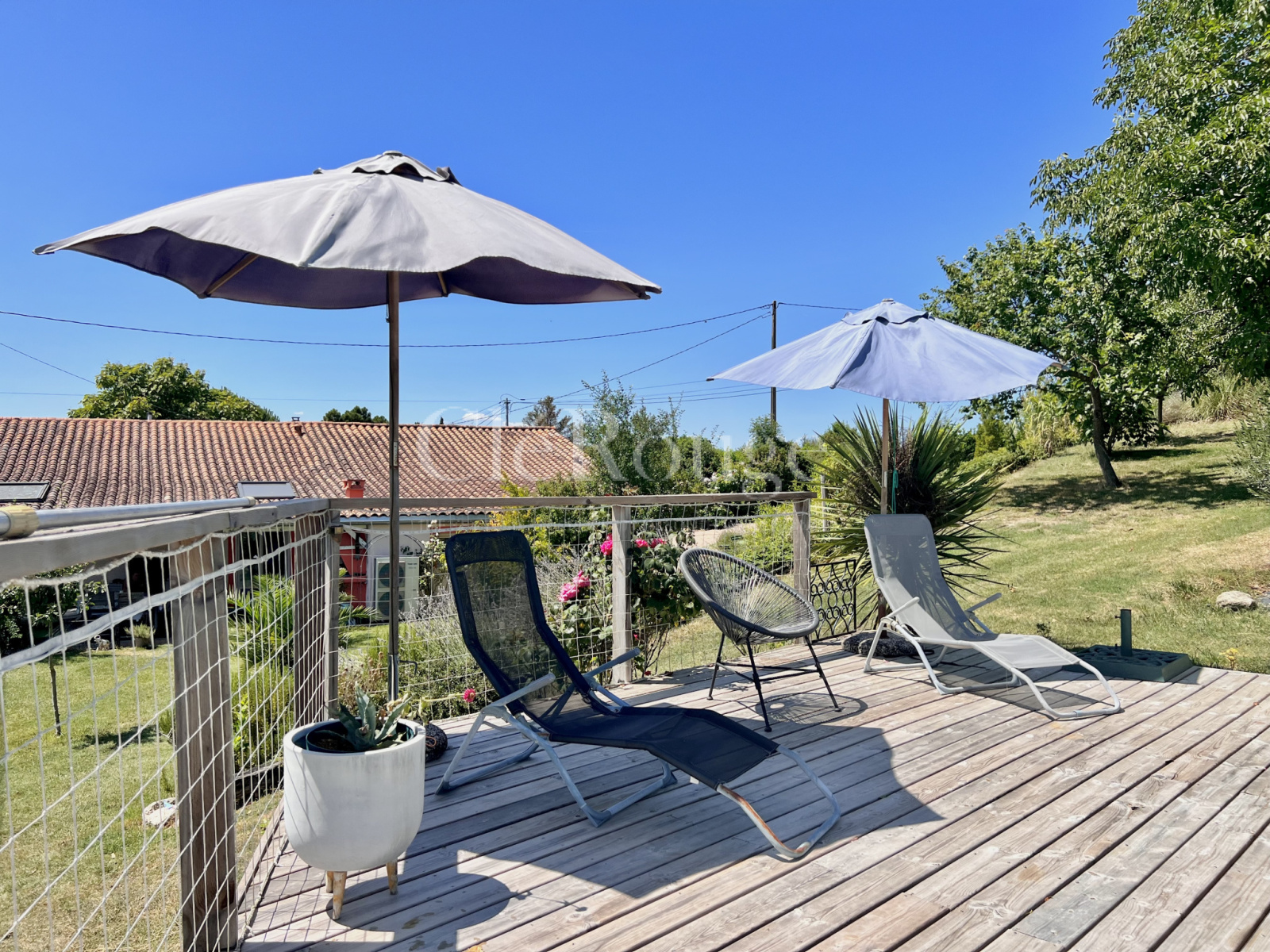 Enfin, le cadre de la piscine avec sa terrasse en bois et ses vues magnifiques complète cette belle propriété, à seulement quelques minutes de Lévignac-de-Guyenne.