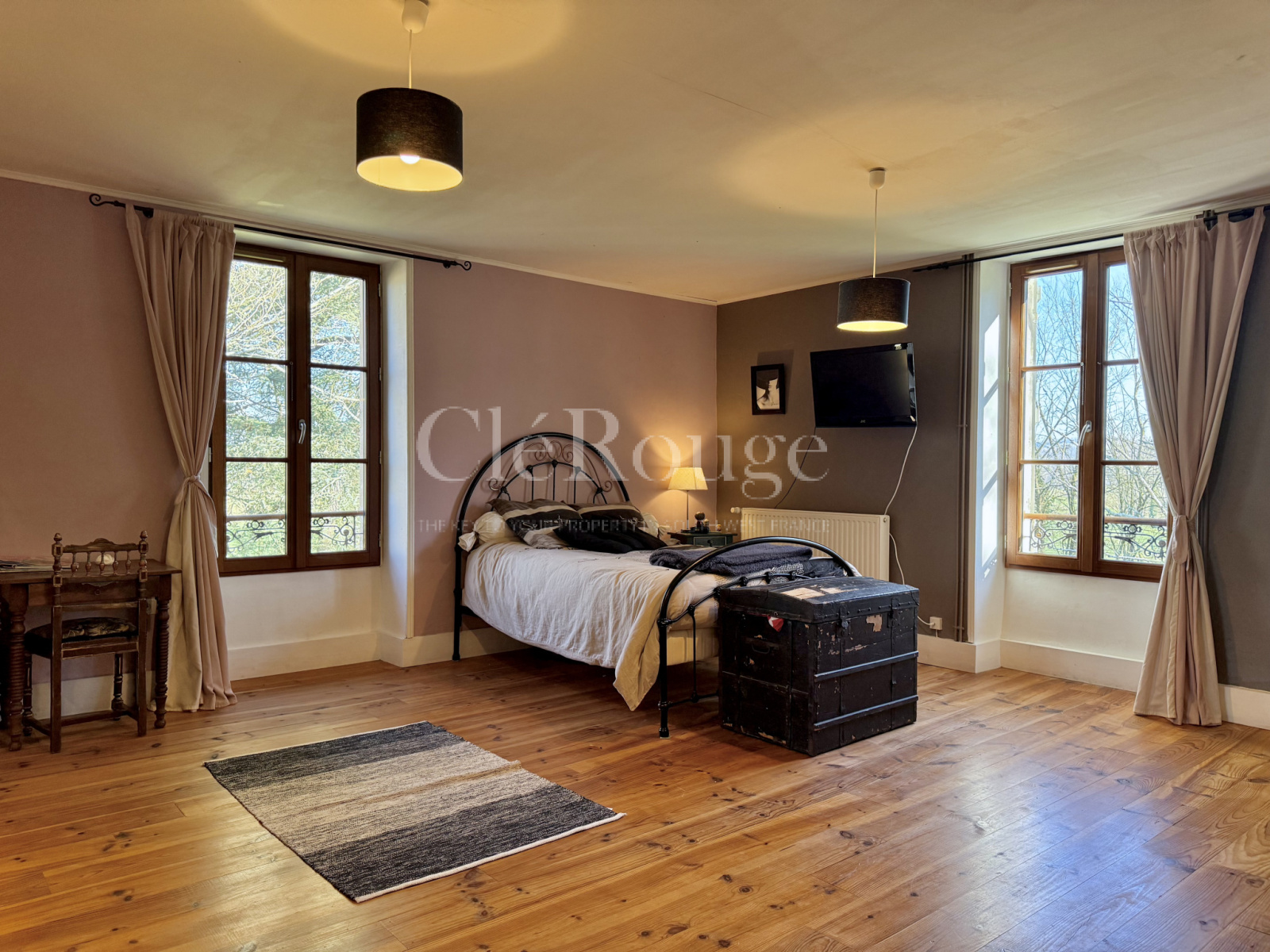 Proche de Nérac, sur une parcelle de 37 310 m², cette somptueuse maison en pierre a été entièrement rénovée par les propriétaires actuels et conjugue élégance et caractère. Ses volumes généreux dévoilent quatre chambres spacieuses et trois salles de bains modernes, parfaites pour accueillir famille et amis.