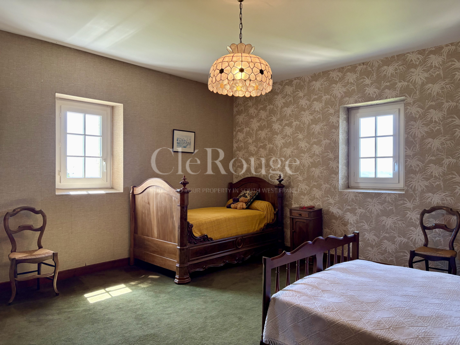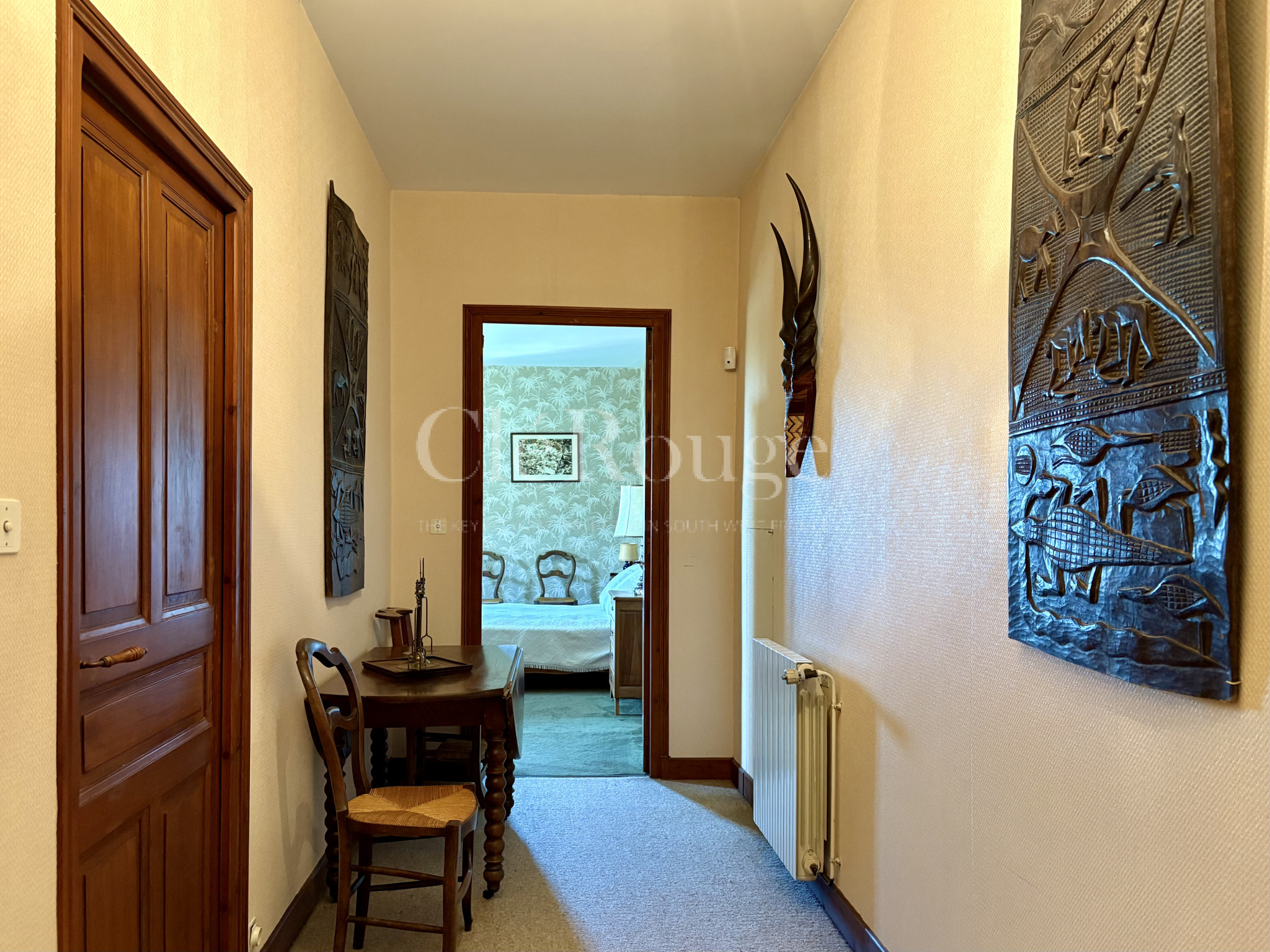 La propriété se compose de 7 pièces, dont 5 chambres, 2 au rez de chaussée, 2 à l’étage et une cinquième en rez-de-jardin ouverte sur l’extérieur, parfaite pour recevoir ou créer une suite indépendante.